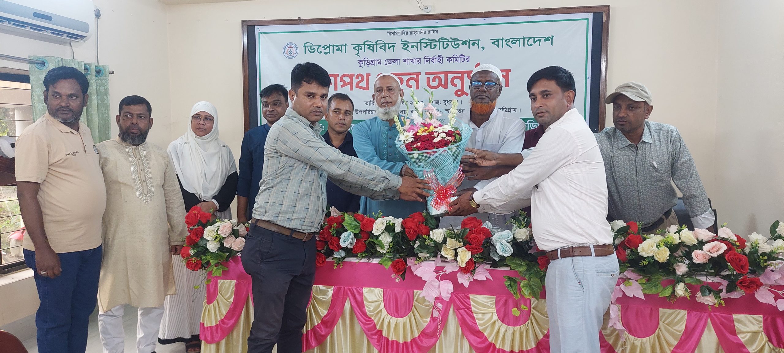 ডিপ্লোমা কৃষিবিদ ইনস্টিটিউশন বাংলাদেশ , কুড়িগ্রাম জেলা শাখার নির্বাহী কমিটির শপথ গ্রহন অনুষ্ঠিত হয়েছে। বুধবার বিকেলে কৃষি সম্প্রসারণ অধিদপ্তর কুড়িগ্রাম এর সম্মেলন কক্ষে এ শপথ গ্রহন অনুষ্ঠিত হয় । নির্বাহী কমিটির সম্মানিত সদস্যদের শপথ বাক্য পাঠ করান জেলা রিটার্নিং অফিসার এস এম রেজাউল করিম। আনুষ্ঠানিকভাবে শপথ গ্রহণ করেন ডিপ্লোমা কৃষিবিদ ইনস্টিটিউশন বাংলাদেশ, কুড়িগ্রাম জেলা শাখার নবগঠিত তিন বছর মেয়াদী নির্বাহী কমিটির সভাপতি