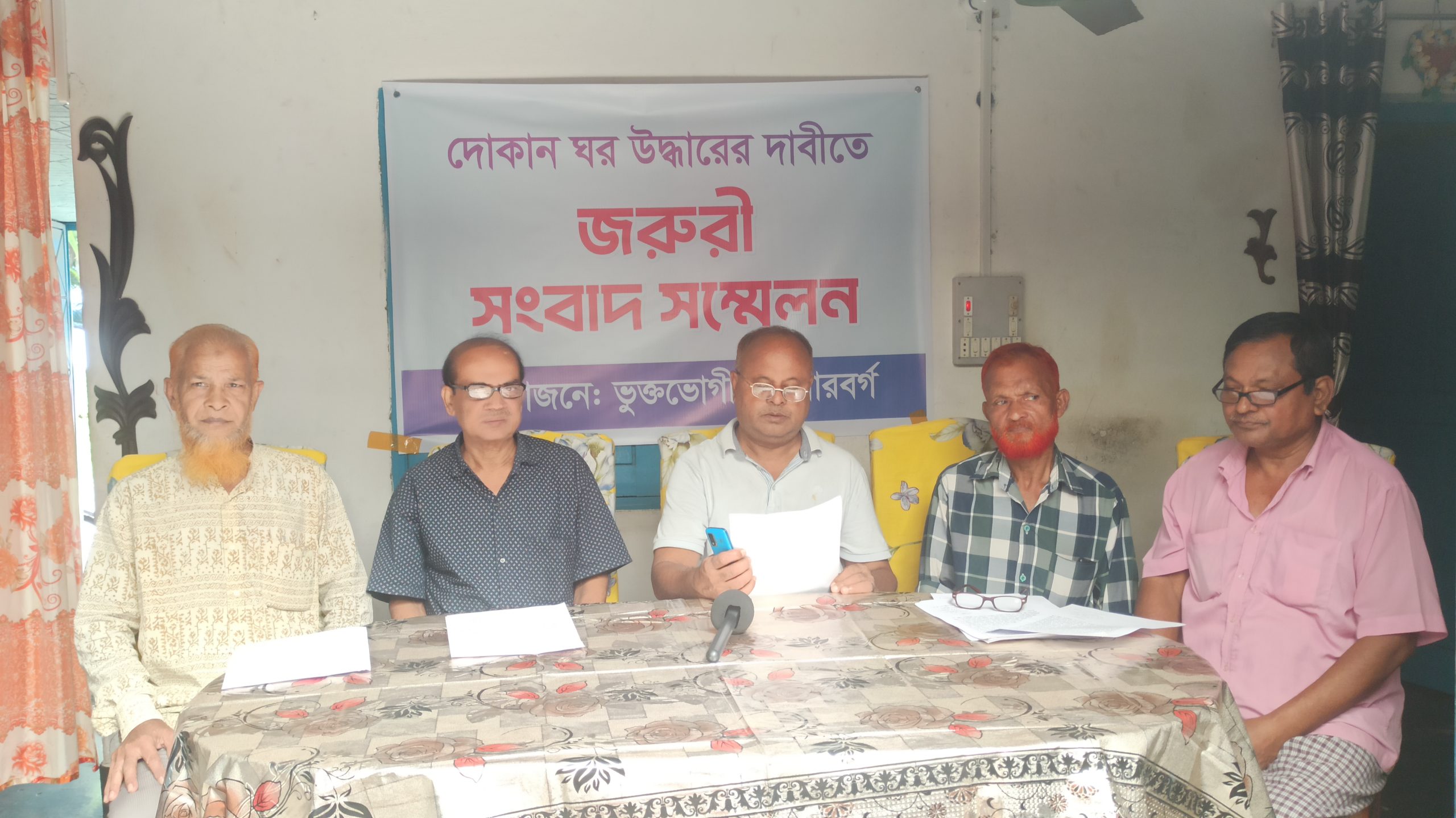 প্রতিবাদে ক্ষতিগ্রস্ত ব্যবসায়ীদের সংবাদ সম্মেলন