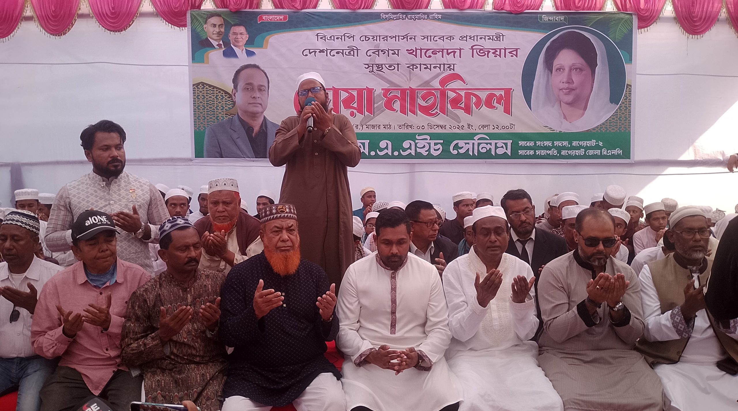 দোয়া মাহফিলে দেশনেত্রী বেগম খালেদা জিয়ার দ্রুত আরোগ্য, সুস্বাস্থ্য এবং দীর্ঘায়ু কামনা করা হয়। নেতৃবৃন্দ বলেন, দেশের গণতন্ত্রের প্রতীক বেগম জিয়া যেন দ্রুত সুস্থ হয়ে জাতির সামনে ফিরে আসেন—এটাই সকলের প্রত্যাশা।