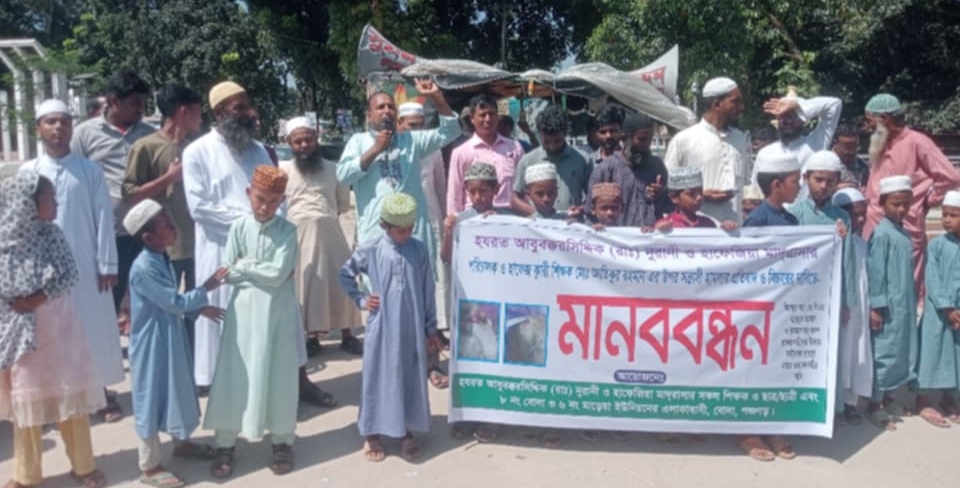 পঞ্চগড়ে মাদ্রাসা শিক্ষকের উপর হামলার প্রতিবাদ ও বিচার দাবিতে মানববন্ধন