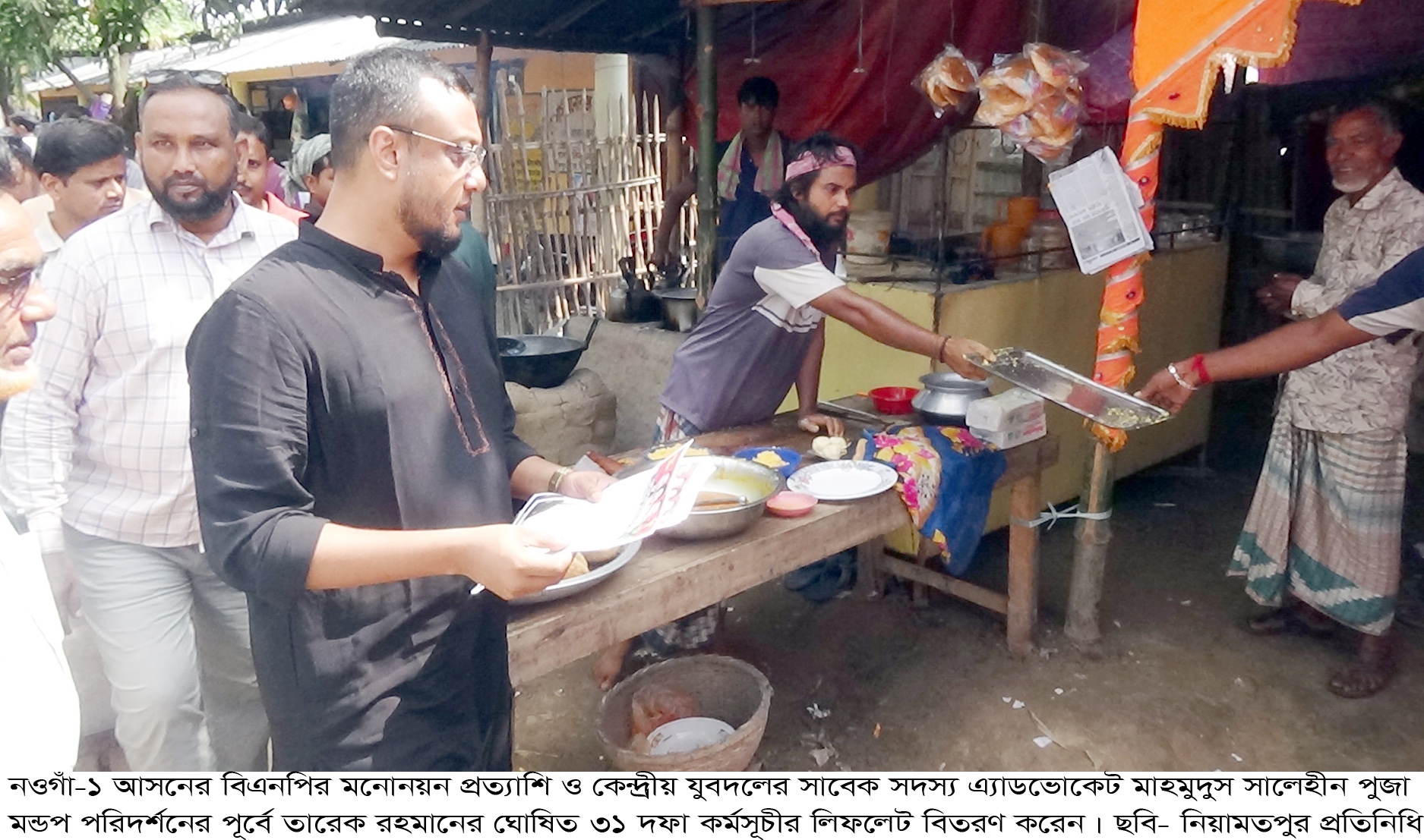 নিয়ামতপুরে বিএনপি নেতাদের পুজামন্ডপ পরিদর্শন