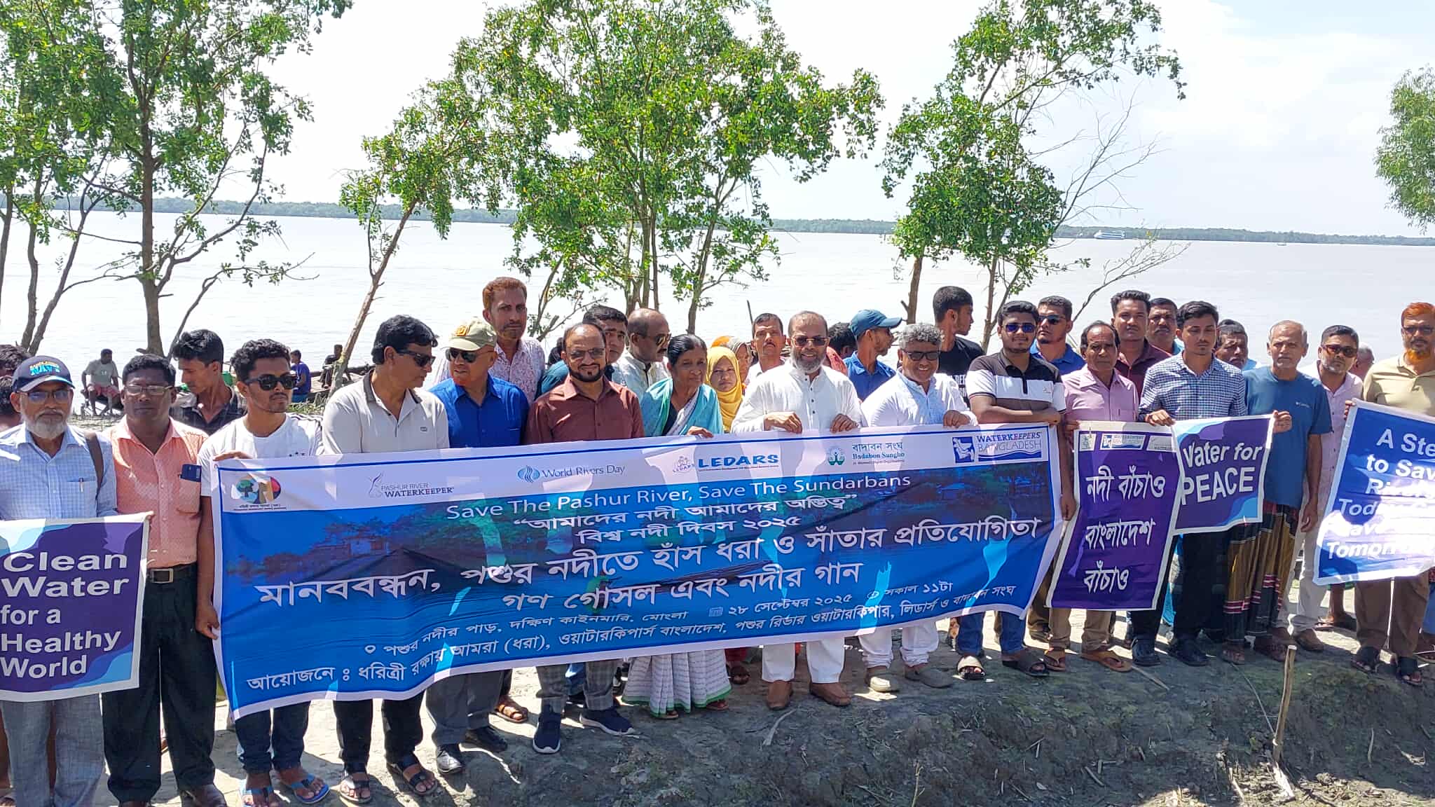 শিল্প দূষণে আক্রান্ত পশুর নদী বাঁচাতে মোংলায় মানববন্ধন
