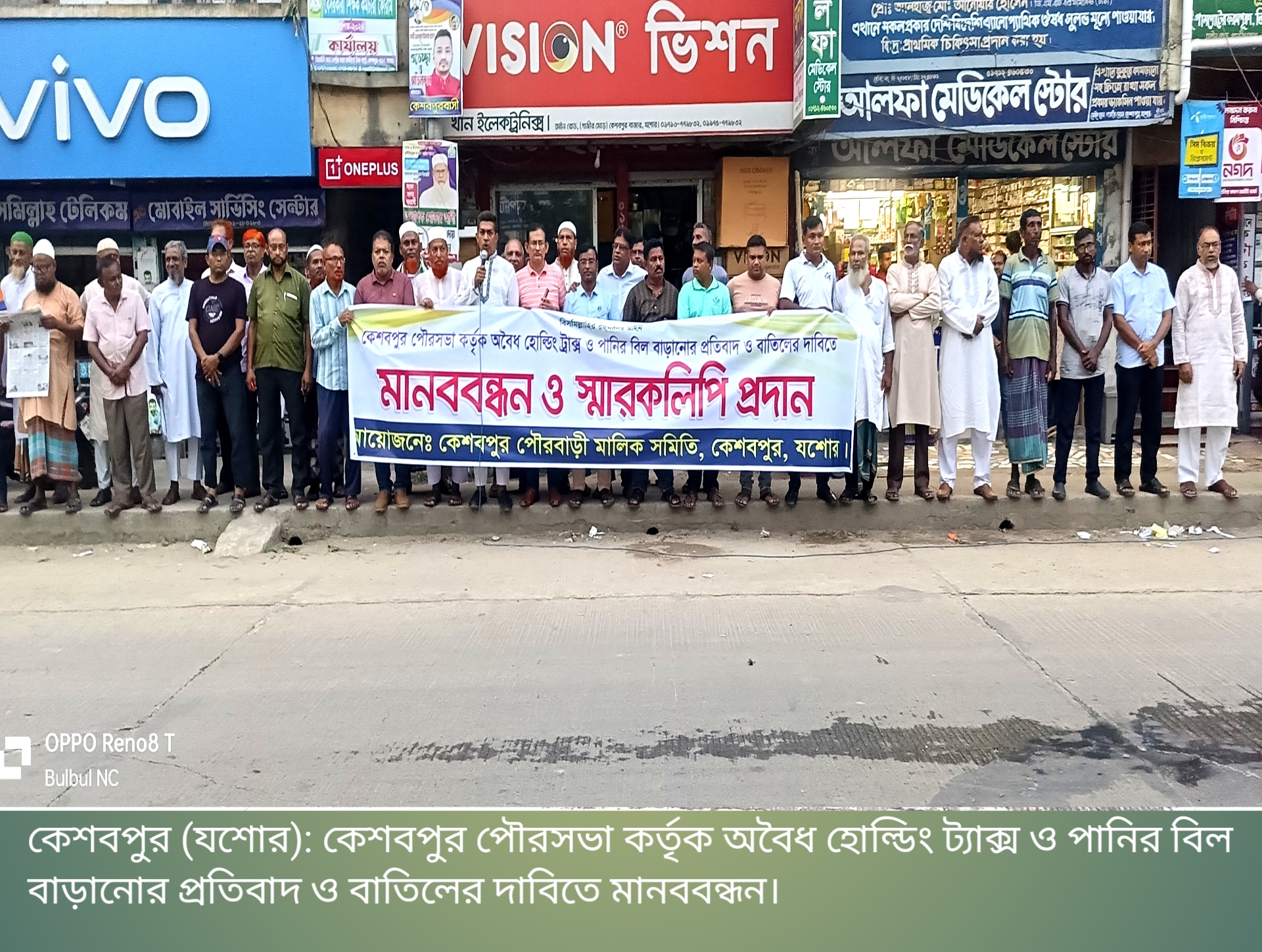 কেশবপুরে হোল্ডিং ট্যাক্স ও পানির বিল বাড়ানোর প্রতিবাদে মানববন্ধন
