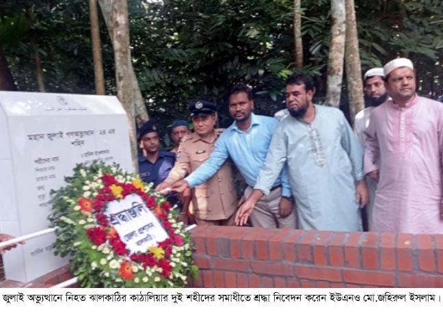 কাঁঠালিয়ায় জুলাই গণঅভ্যুত্থানে দুই শহীদের সমাধিতে ইউএনওর শ্রদ্ধা নিবেদন