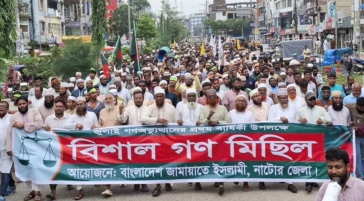 জুলাই গণঅভ্যুত্থান প্রথমবার্ষিকী উপলক্ষে নাটোরে জামায়েত ইসলামী বিশাল গণমিছিল