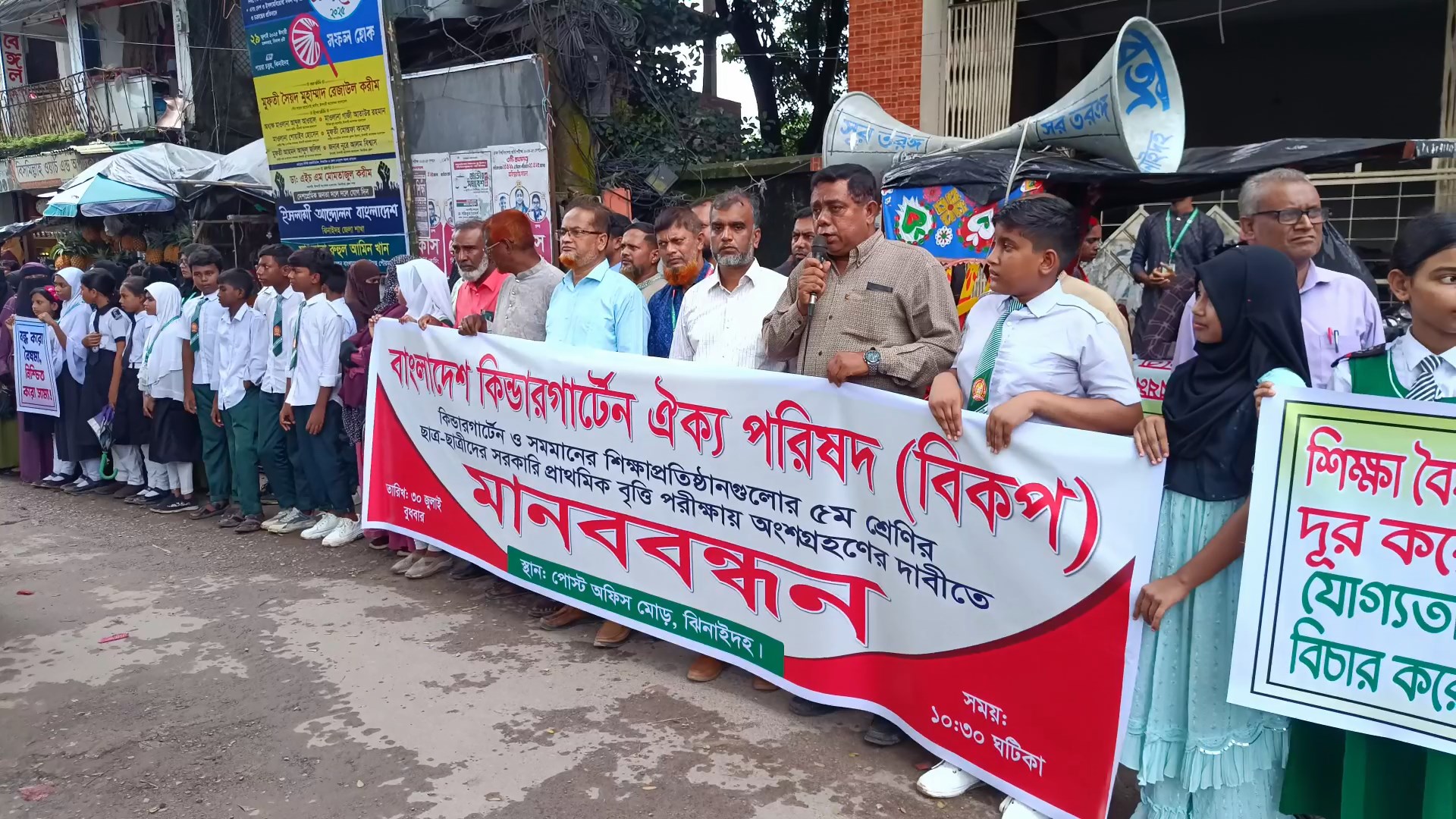 প্রাথমিক বৃত্তি পরীক্ষায় কিন্ডারগার্টেনের শিক্ষার্থীদের অংশগ্রহনের দাবীতে ঝিনাইদহে মানববন্ধন