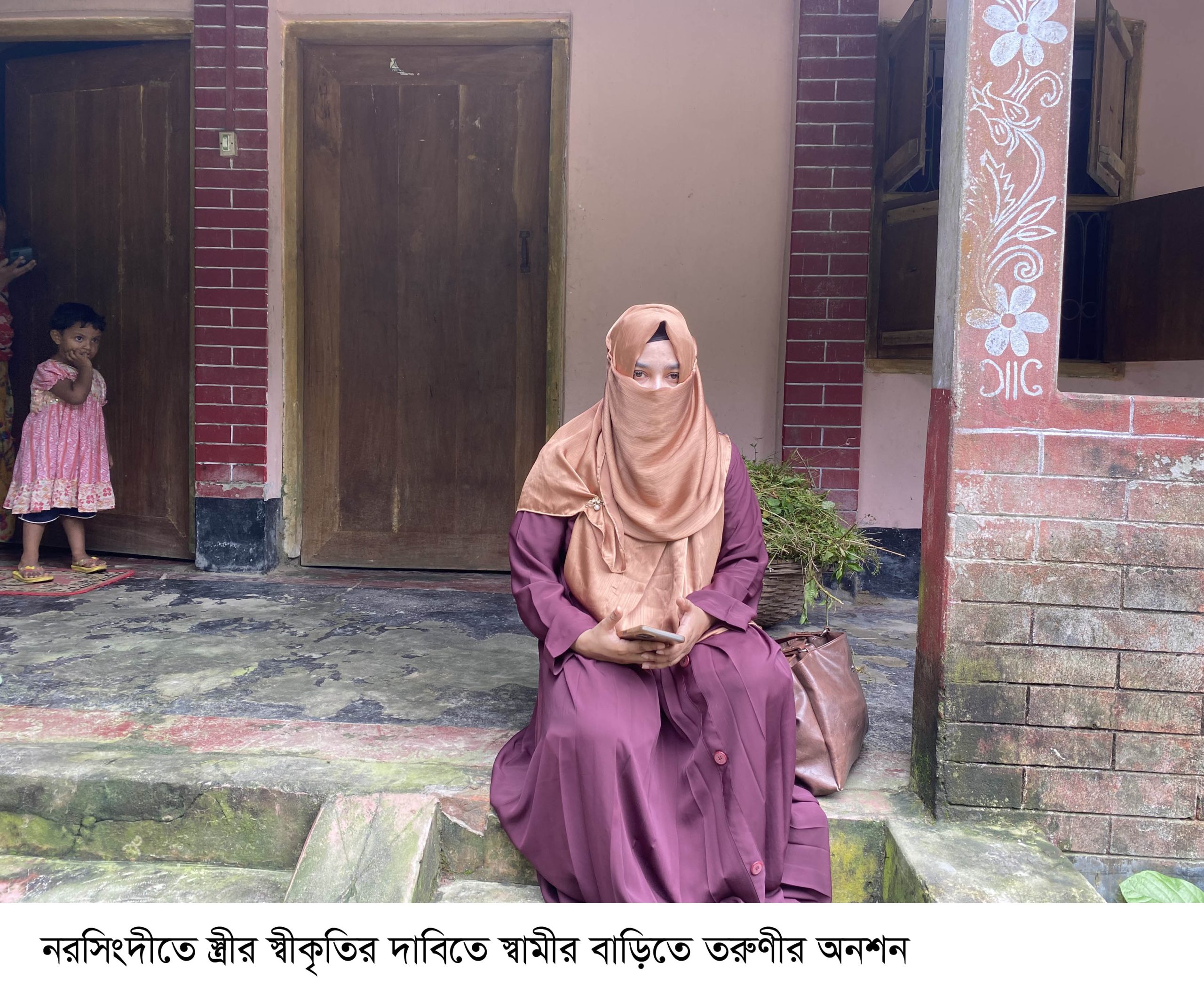 নরসিংদীতে স্ত্রীর স্বীকৃতির দাবিতে তরুণীর অনশন