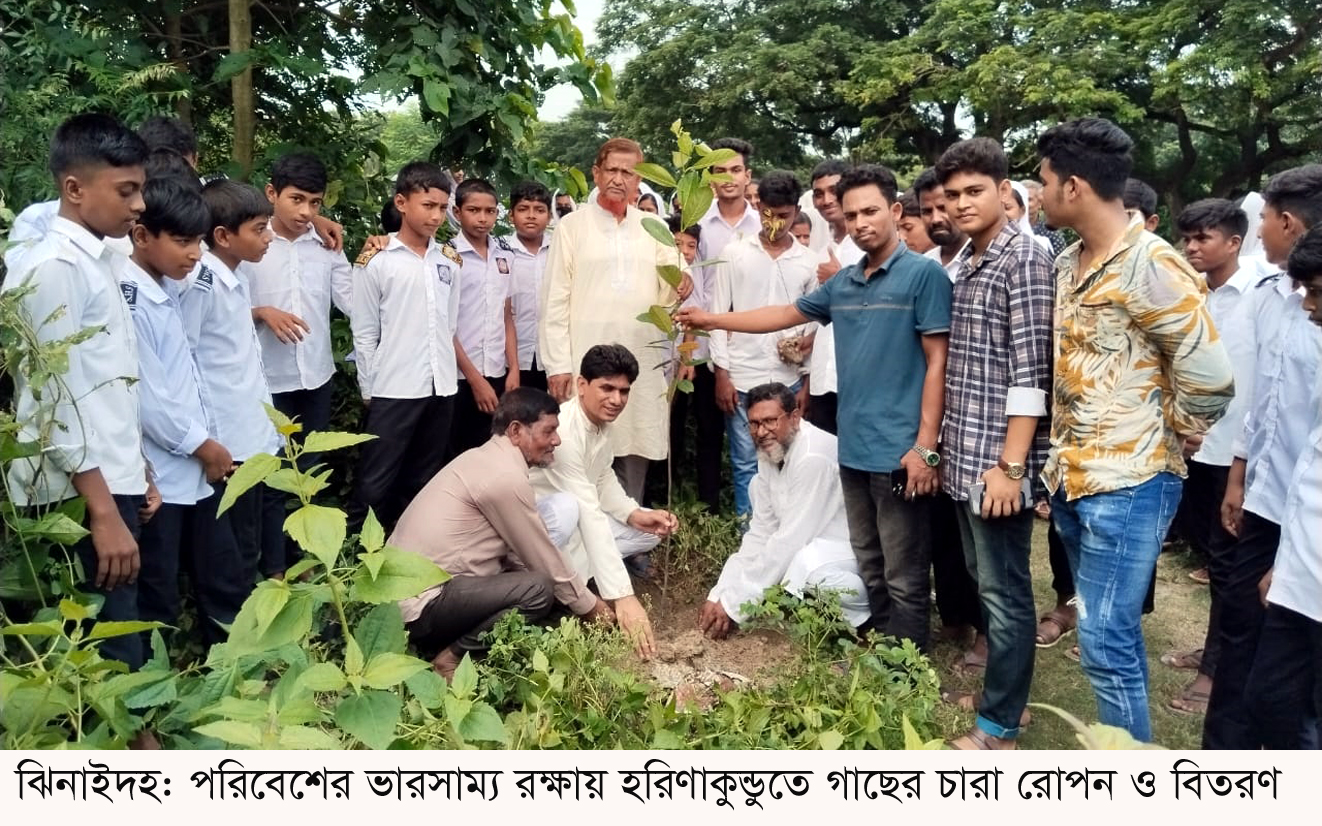 হরিণাকুন্ডুতে পরিবেশের ভারসাম্য রক্ষায় গাছের চারা রোপন ও বিতরণ