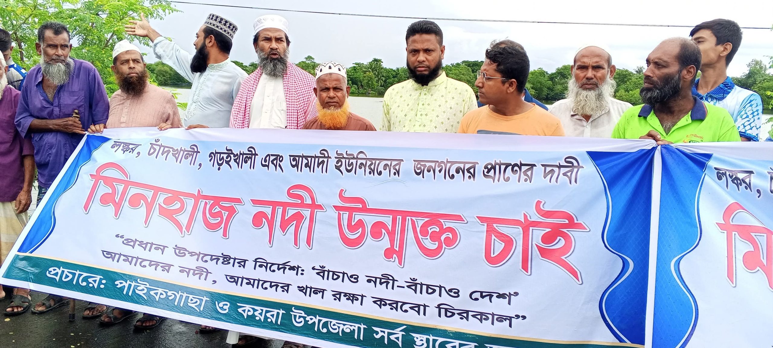 পাইকগাছায় মিনহাজ নদীর খনন ও ইজারা বাতিলের দাবিতে মানববন্ধন অনুষ্ঠিত