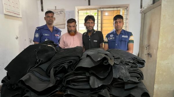 ১৫ লাখ টাকার চামড়াসহ দুইজনকে গ্রেপ্তার করে সাভার থানা পুলিশ