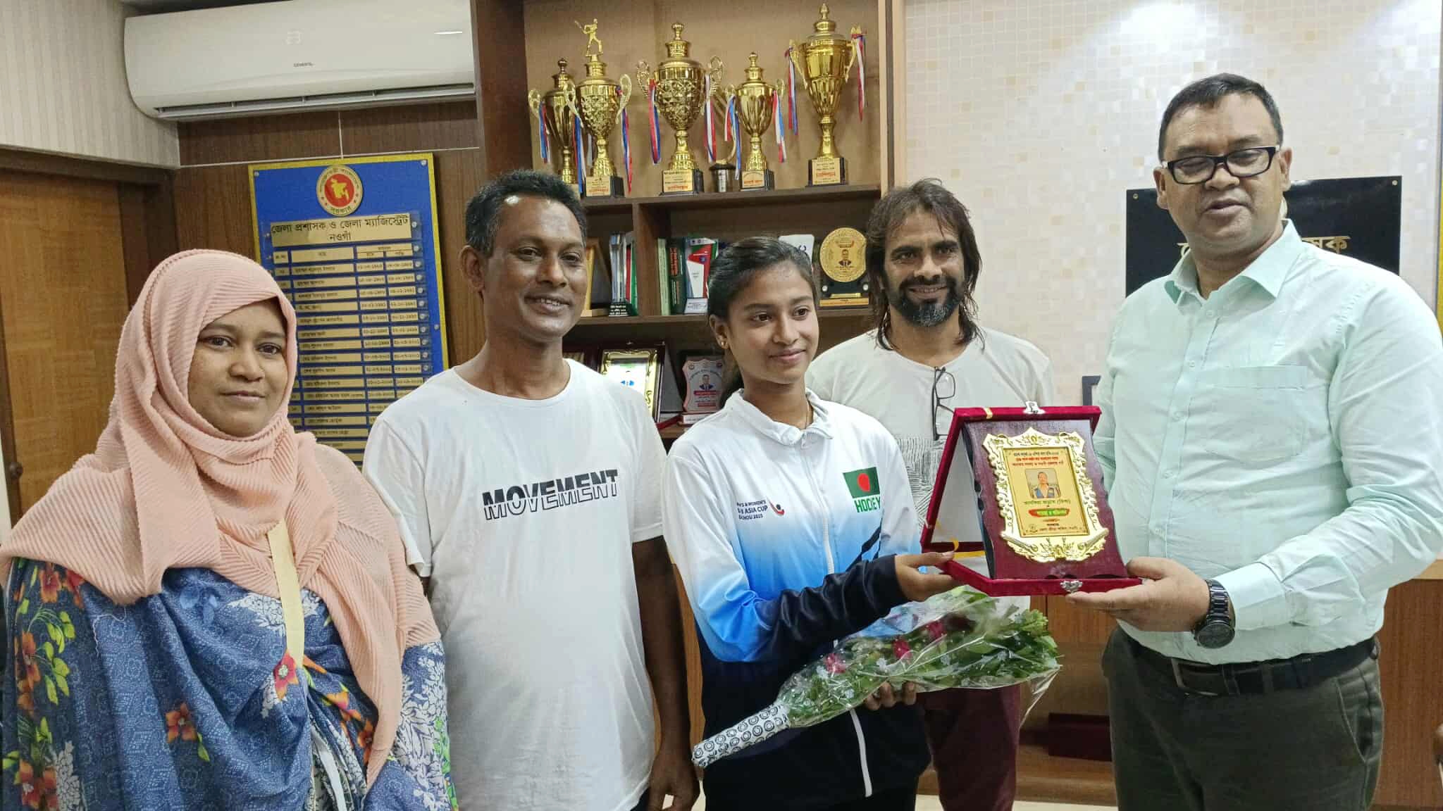 ব্রোঞ্জ পদক জয়ী হকি দলের খেলোয়াড় নওগাঁর মেয়ে তিশাকে সংবর্ধনা