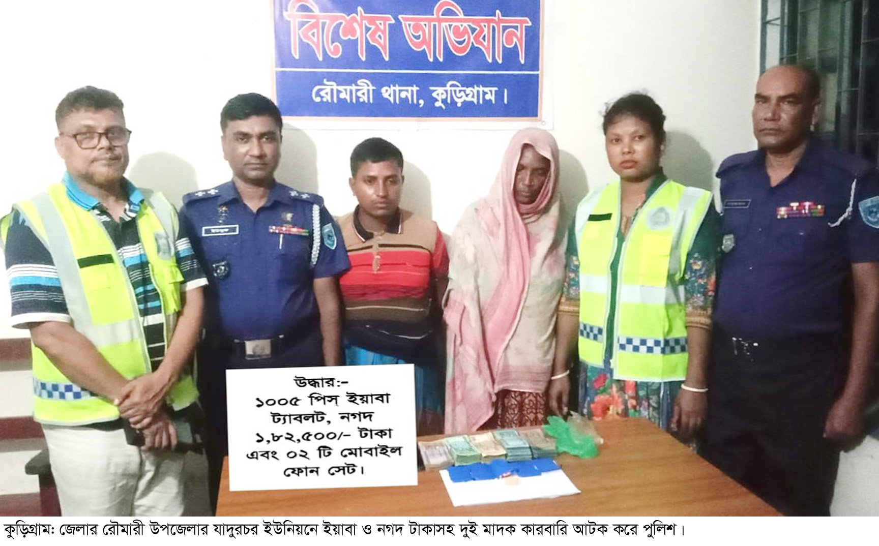 কুড়িগ্রামে ১ হাজার পিস ইয়াবা ও নগদ অর্থসহ দুই মাদক কারবারি আটক