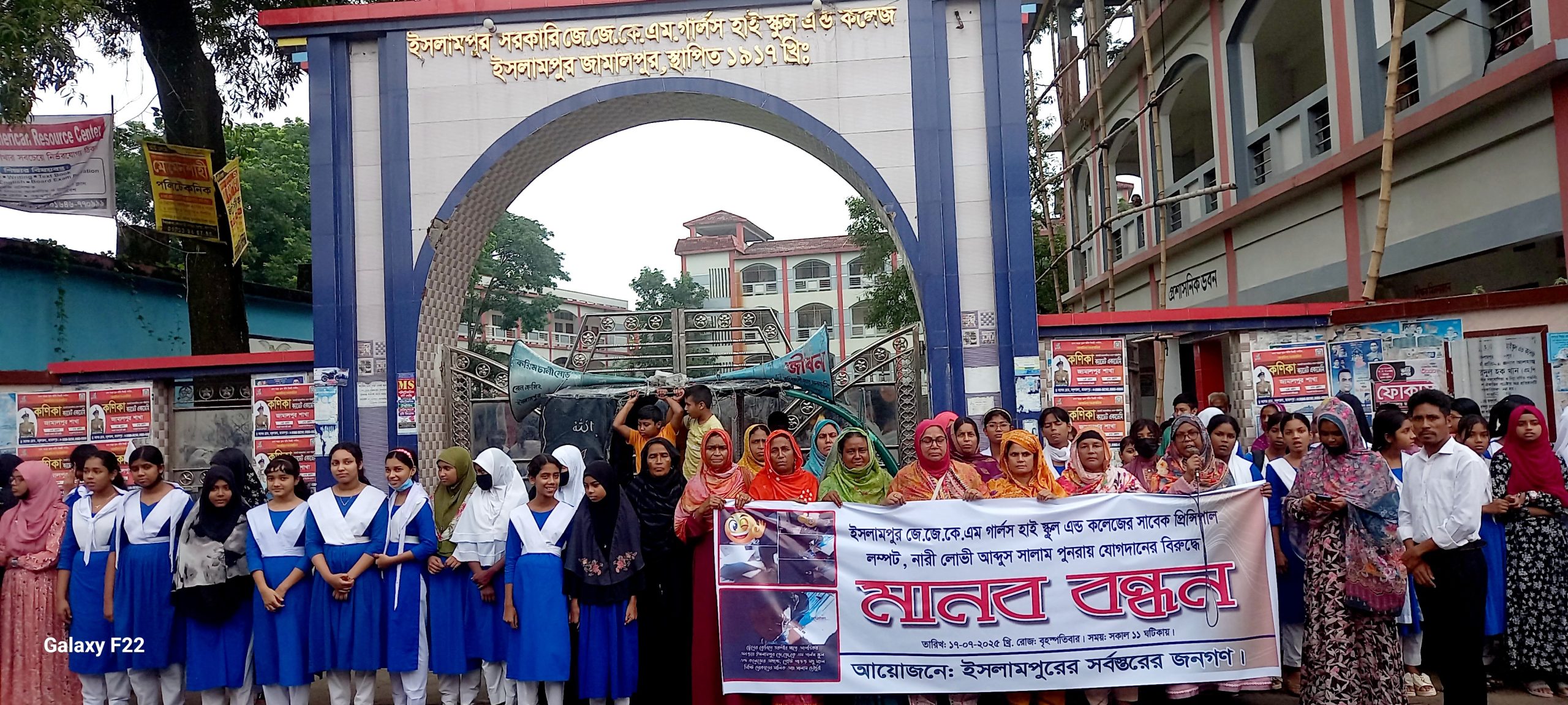 ইসলামপুরে লম্পট, নারীলোভী সাবেক প্রিন্সিপালের বিরুদ্ধে মানববন্ধন