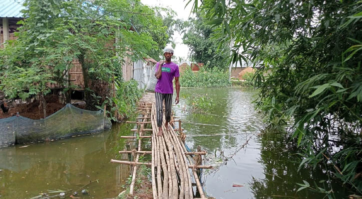 জয়পুরহাটে ২০ বছর ধরে চলাচলের একমাত্র ভরসা বাঁশের সাঁকো