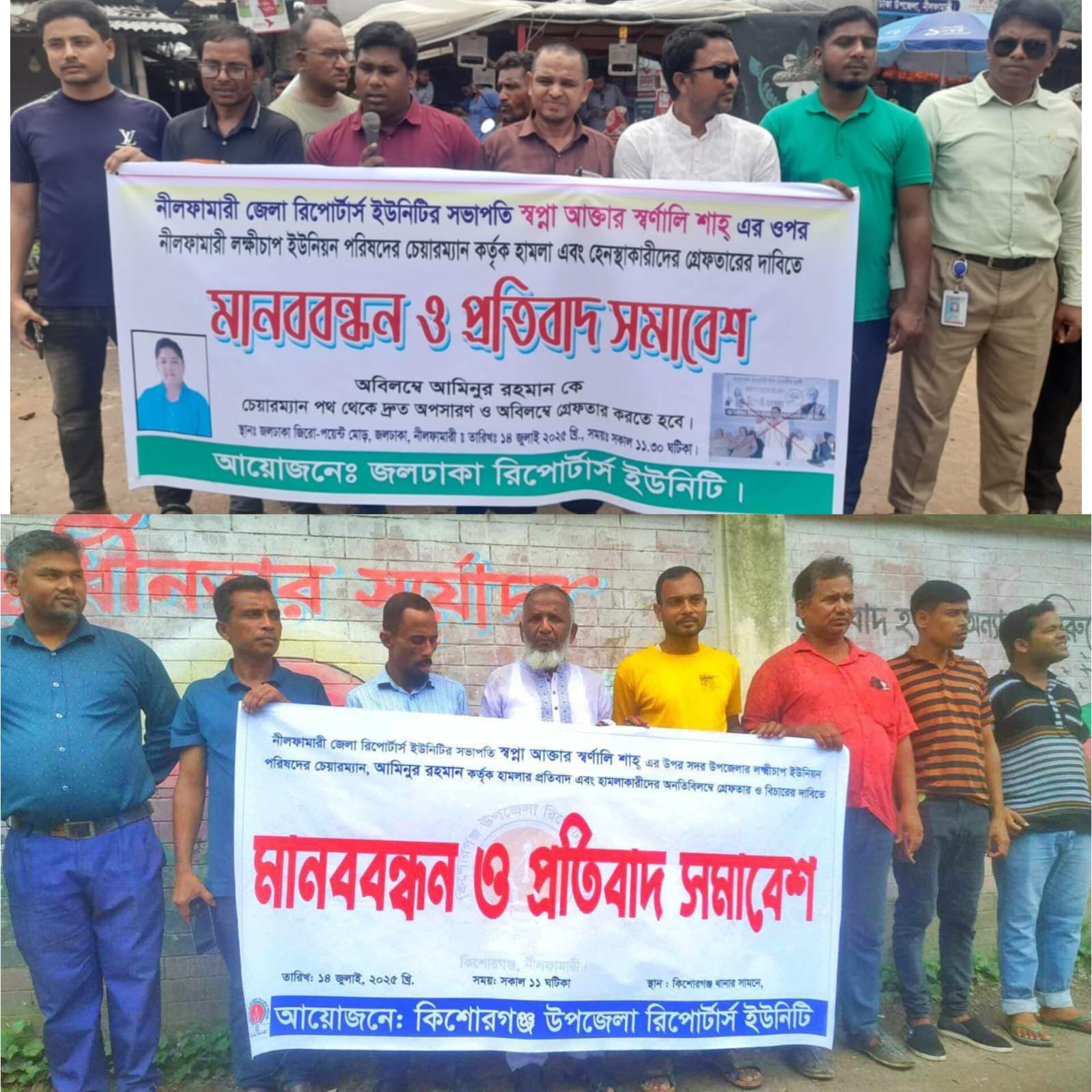 নীলফামারীতে নারী সাংবাদিকরে উপর হামলার প্রতিবাদে মানববন্ধন