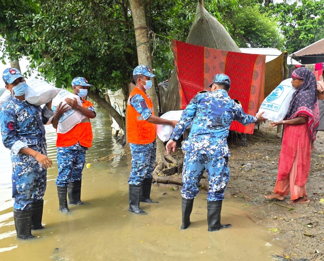 ফেনীতে বন্যায় ক্ষতিগ্রস্থ পরিবারের মাঝে ত্রাণ বিতরণ করেছে কোস্টগার্ড
