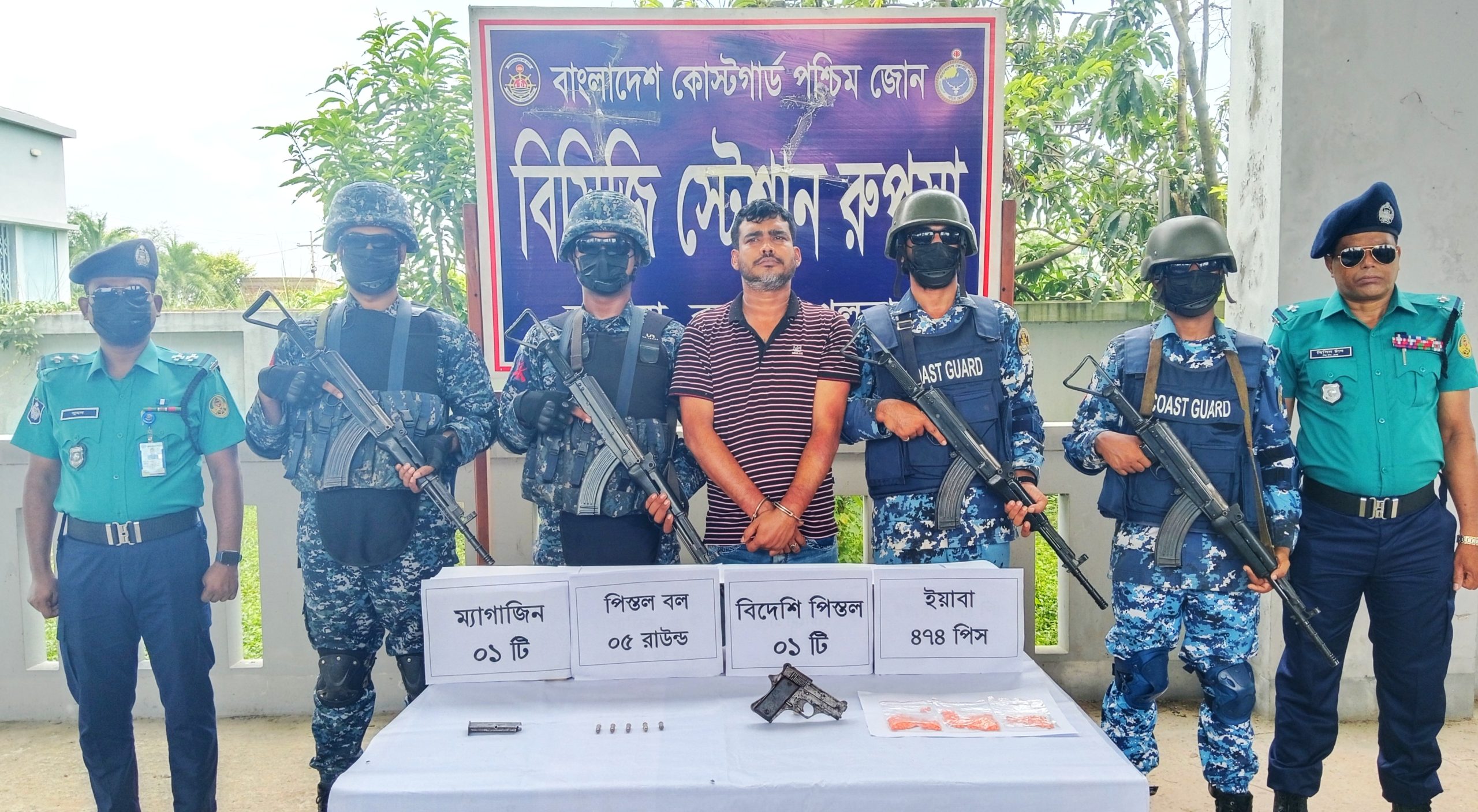 কোস্টগার্ডের নেতৃত্বে যৌথবাহিনীর অভিযানে বিদেশি পিস্তল ইয়াবাসহ আটক ১