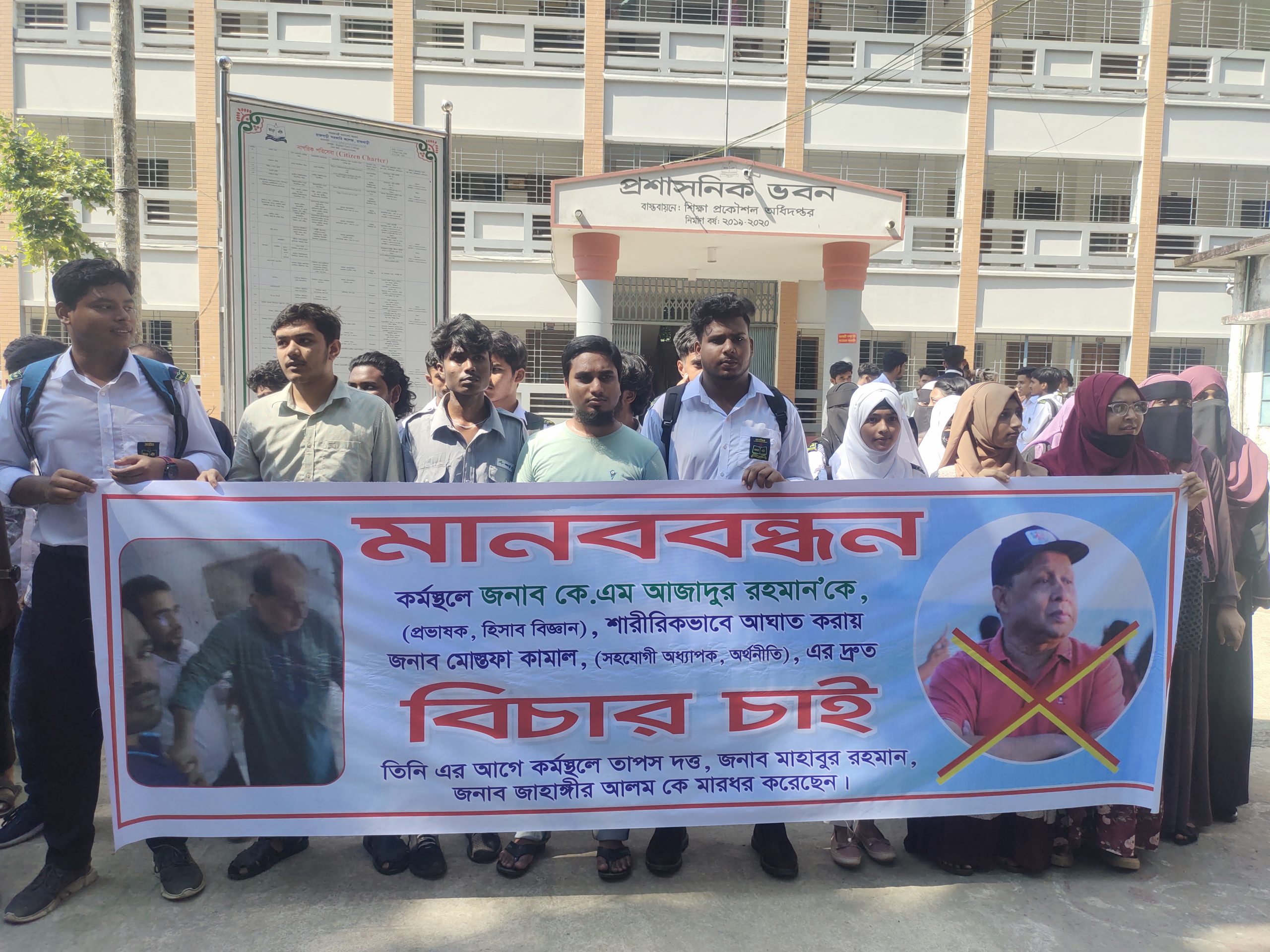 রাজবাড়ী সরকারী কলেজ শিক্ষক’কে হেনস্তা- শিক্ষক সমিতির সাধারন সম্পাদকের বিরুদ্ধে মানববন্ধন ও তিন সদস্যের তদন্ত কমিটি গঠন