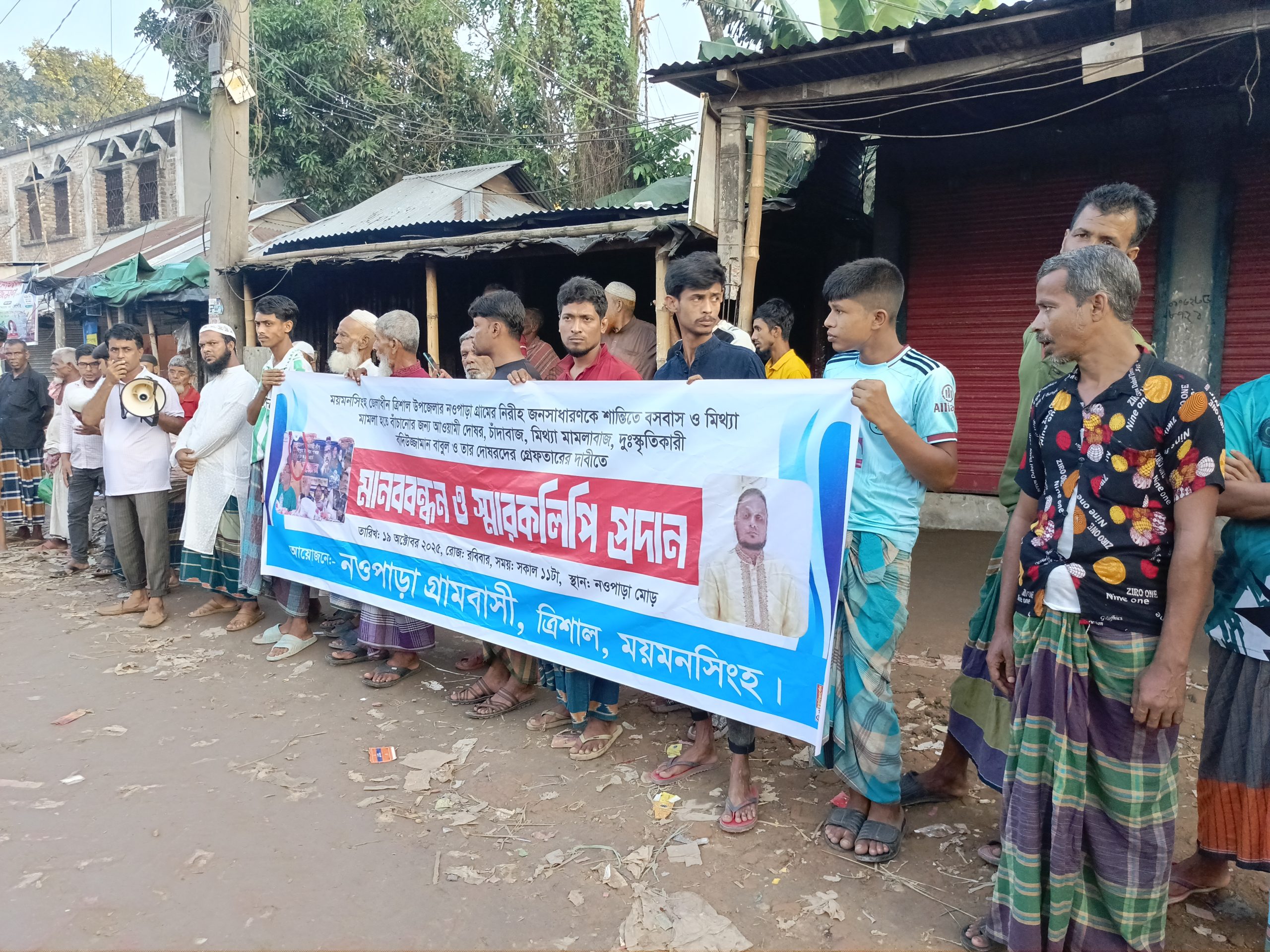 ত্রিশালে ভূমিদস্যু বাবুলকে গ্রেফতার দাবিতে মানববন্ধন