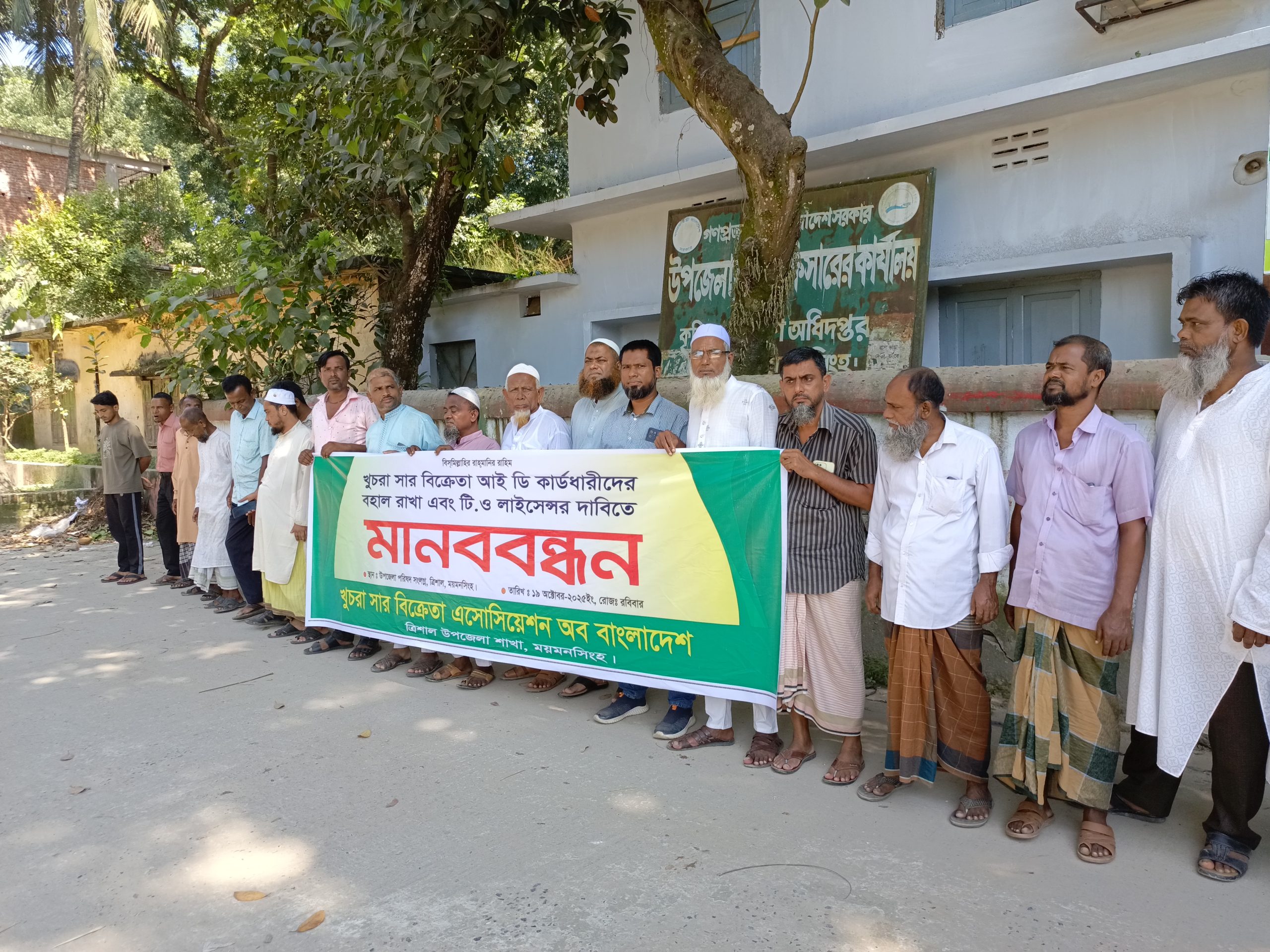 ত্রিশালে খুচরা সার বিক্রেতাদের আইডি কার্ড বহাল রাখার দাবিতে মানববন্ধন ও স্মারকলিপি