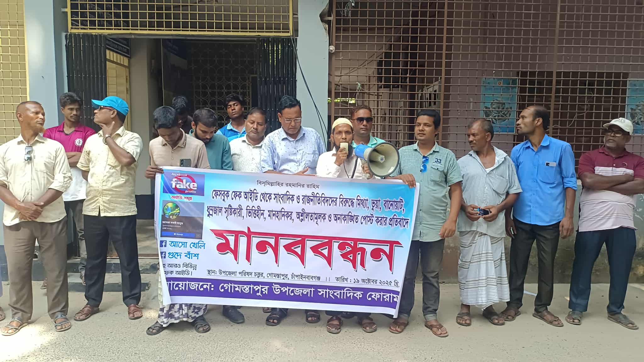 গোমস্তাপুরে সাংবাদিকদের মানববন্ধন