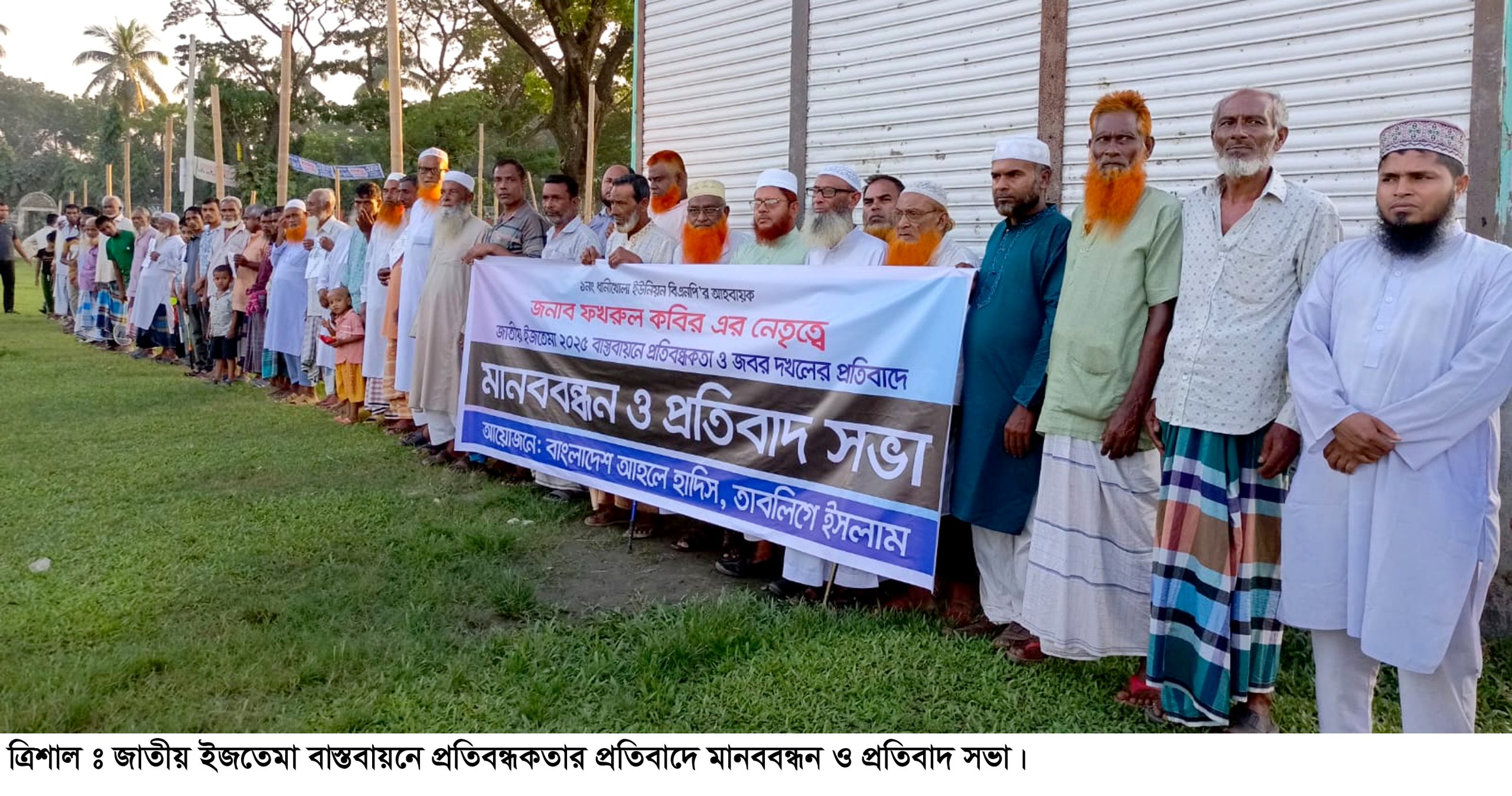 প্রতিবন্ধকতার প্রতিবাদে এলাকাবাসীর মানববন্ধন