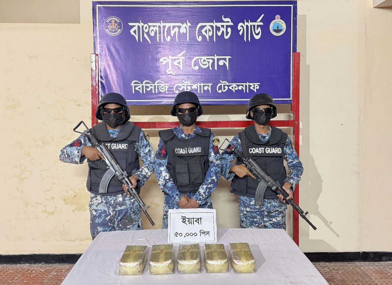 টেকনাফে কোস্টগার্ডের অভিযানে ৫০ হাজার পিস ইয়াবা জব্দ