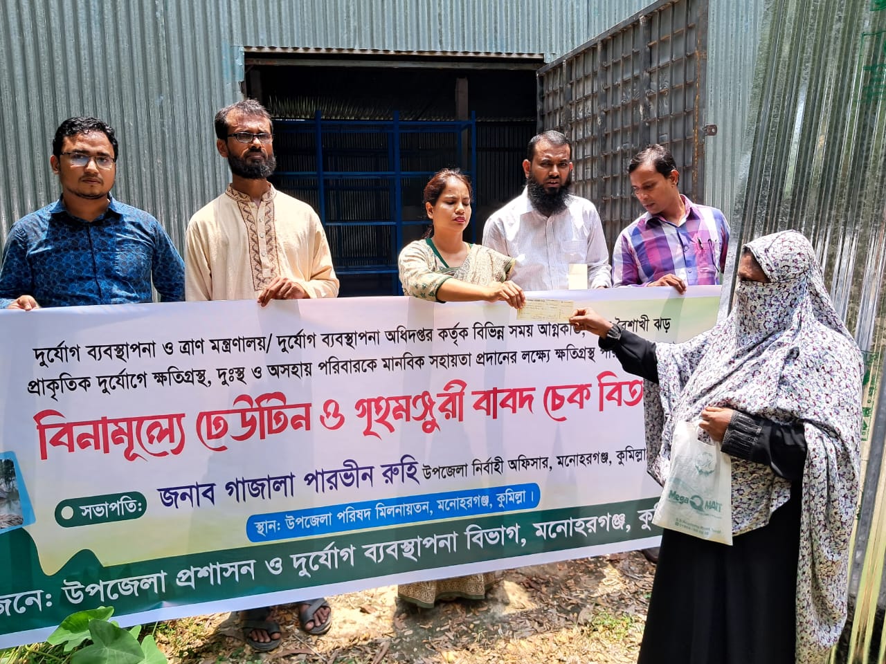 মনোহরগঞ্জে বিনামূল্যে ঢেউটিন ও চেক বিতরণ