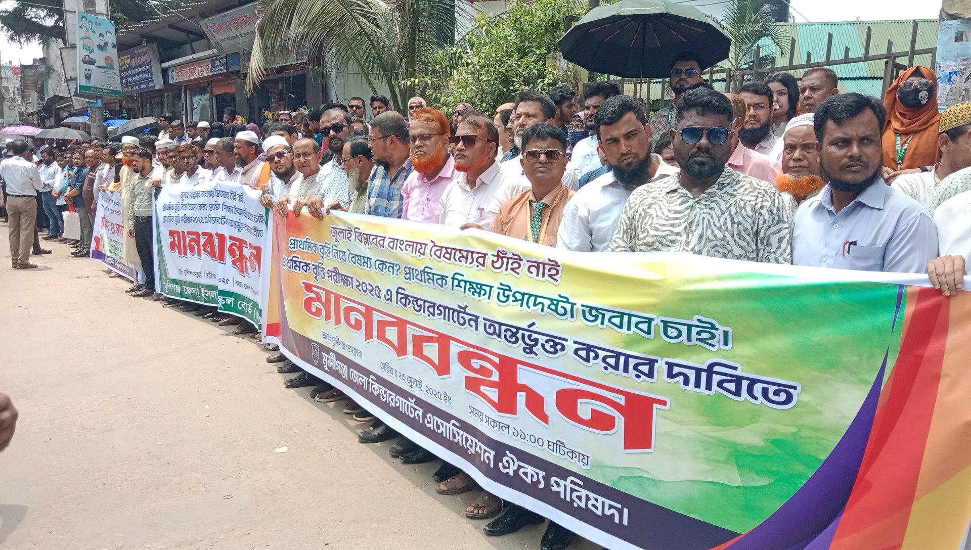 প্রাথমিক বৃত্তি পরীক্ষায় বৈষম্যের প্রতিবাদে মুন্সীগঞ্জে মানববন্ধন