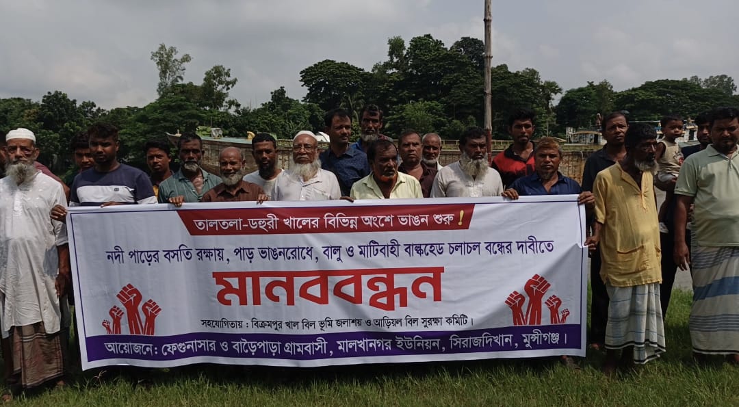 বালুবাহী বাল্কহেড চলাচল বন্ধের দাবিতে মানববন্ধন অনুষ্ঠিত