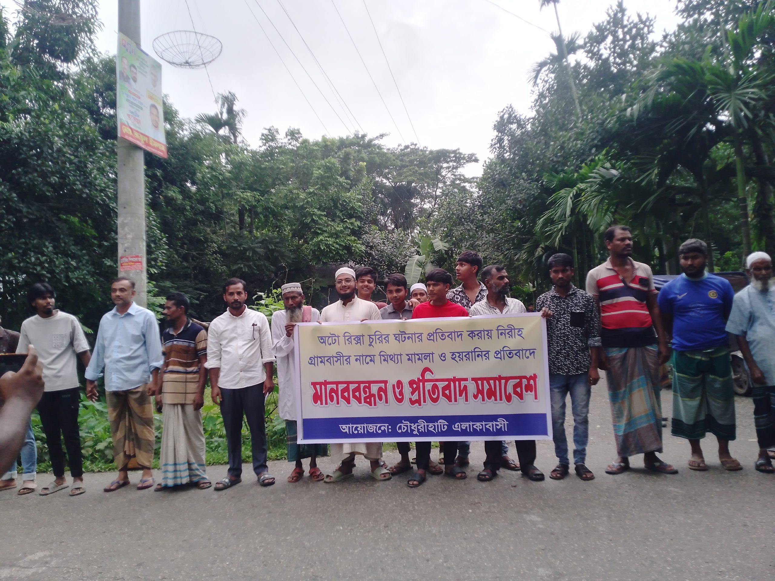 চুরির প্রতিবাদ করায় বিপাকেব গ্রামবাসীর মানববন্ধন করেন