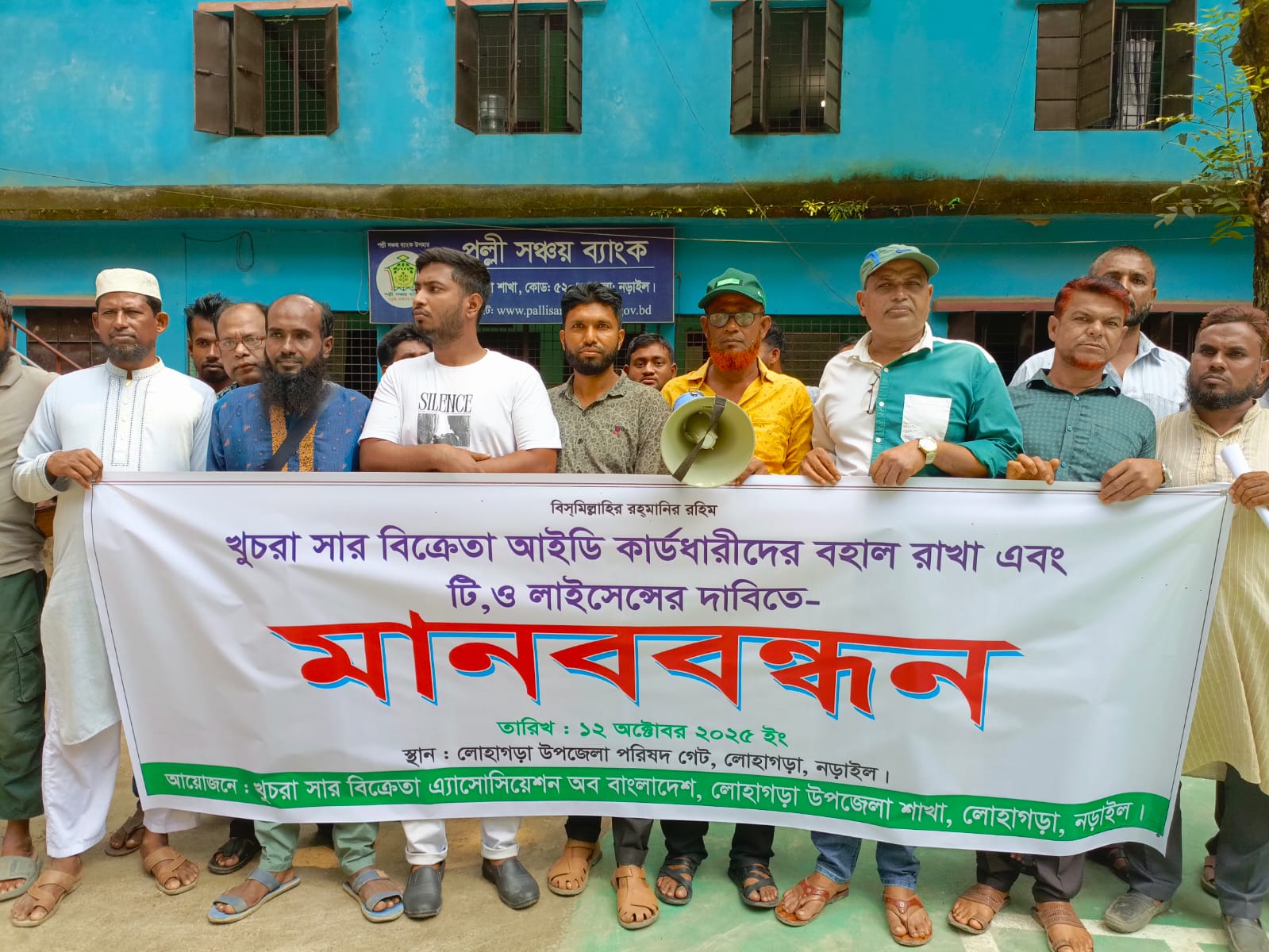 লোহাগড়ায় খুচরা সার বিক্রেতাদের মানববন্ধন ও স্মারকলিপি