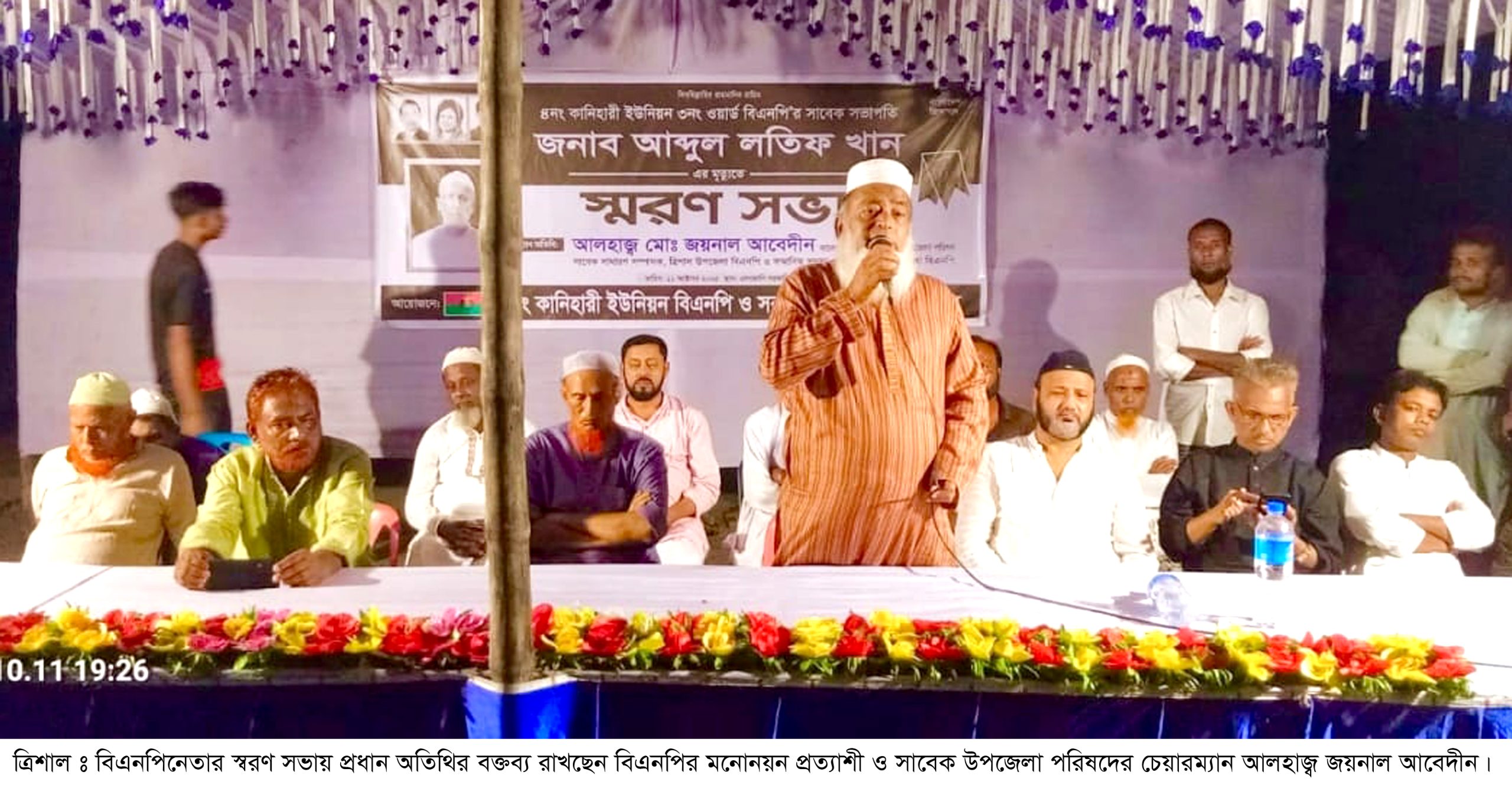 ত্রিশালে বিএনপিনেতার মৃত্যুতে স্বরণসভা ও দোয়া মাহফিল