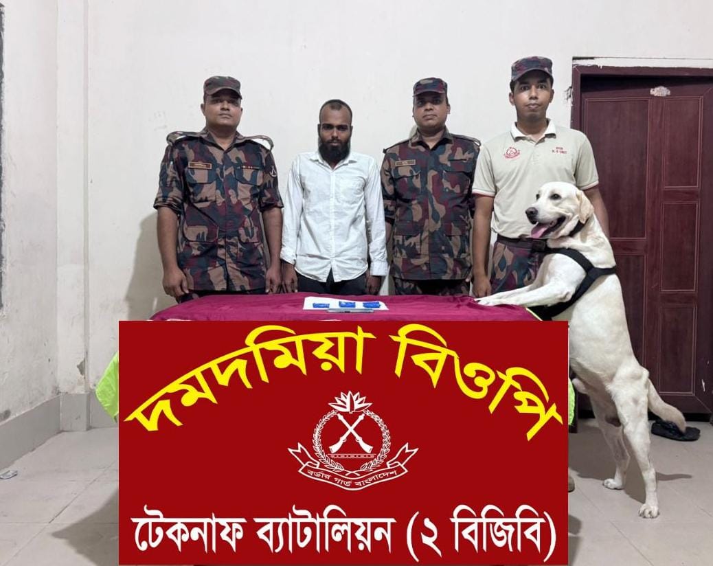 টেকনাফে ডগ ‘বার্লিন’ ম্যাজিকে ঢাকাগামী বাস থেকে ইয়াবা ট্যাবলেট সহ চোরাকারবারি গ্রেপ্তার