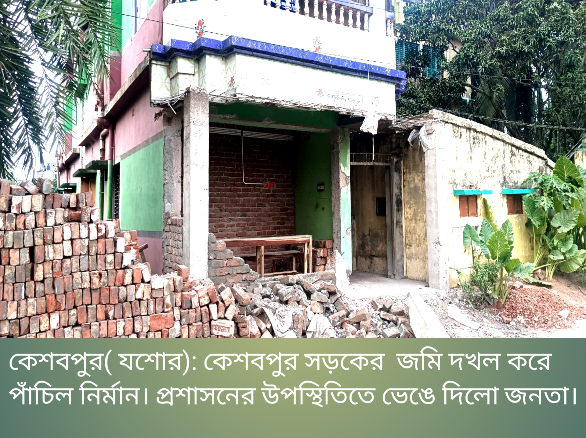 কেশবপুরে সড়কের জায়গা দখল করে প্রাচীর নির্মাণ, ভেঙ্গে দিল জনতা