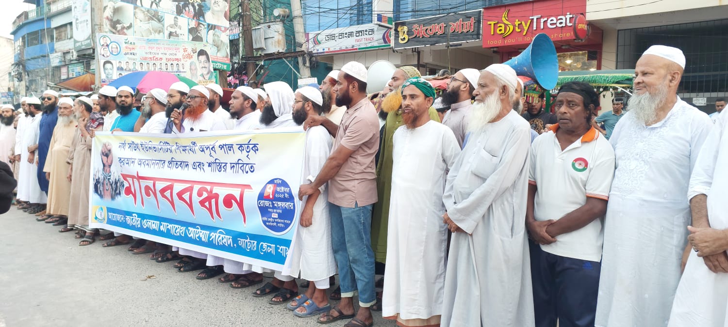 কুরআন অবমাননার প্রতিবাদ এবং শাস্তির দাবিতে নাটোরে মানববন্ধন