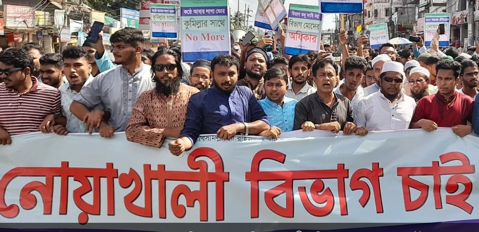 নোয়াখালী বিভাগ ঘোষণার দাবিতে মাইজদীতে বিক্ষোভ