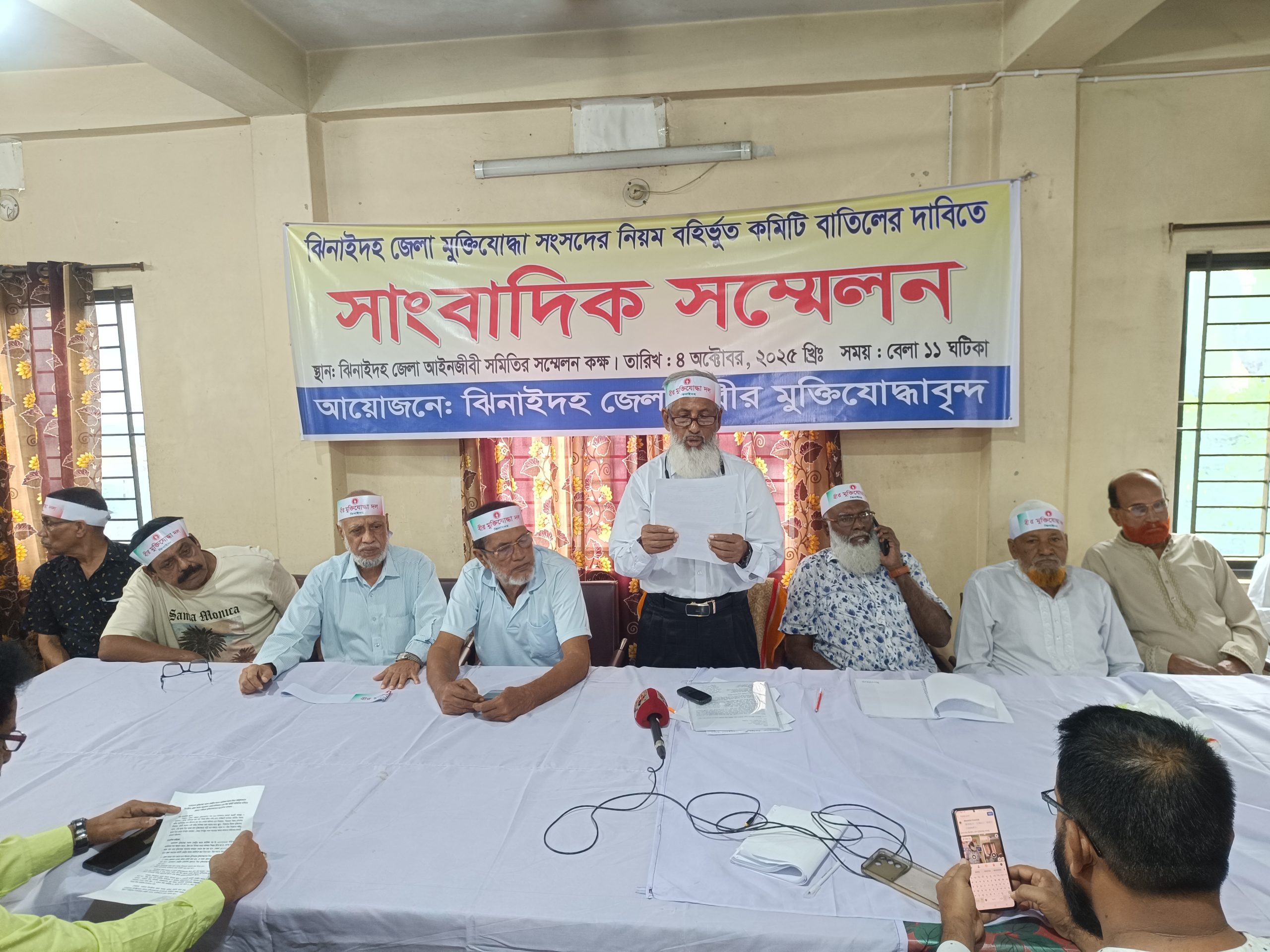 ঝিনাইদহ জেলা মুক্তিযোদ্ধা সংসদের কমিটি বাতিলের দাবিতে সংবাদ সম্মেলন