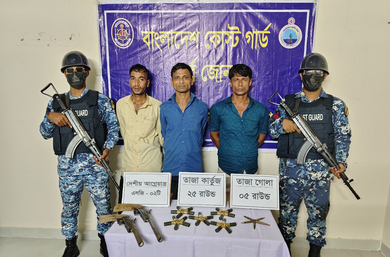 মহেশখালীতে কোস্টগার্ডের অভিযানে অস্ত্র গোলাবারুদসহ তিন সন্ত্রাসী আটক