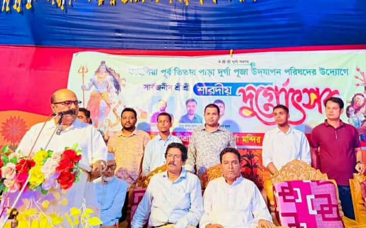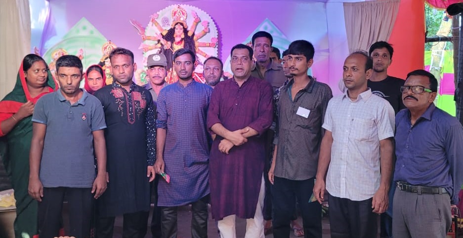 সাদুল্লাপুরে পূজামণ্ডপে বিএনপি নেতা রফিকের আর্থিক সহায়তা