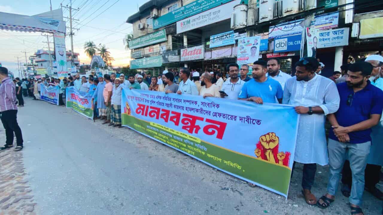 গোলাপগঞ্জে সাংবাদিকের ওপর হামলার প্রতিবাদে মানববন্ধন