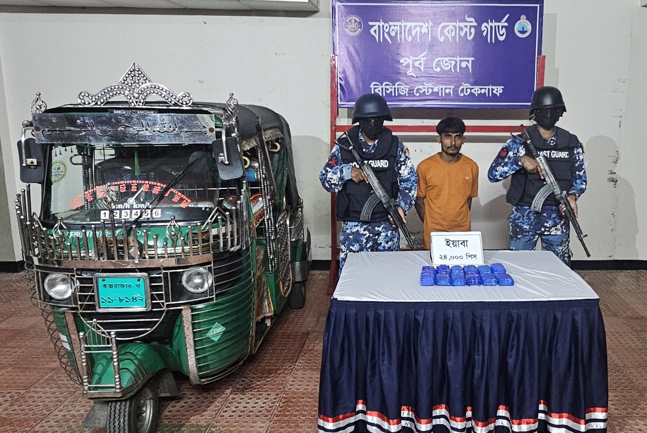 টেকনাফে সিএনজি থেকে ইয়াবাসহ পাচারকারী আটক