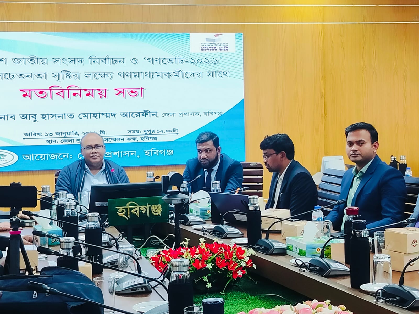 জাতীয় সংসদ নির্বাচন ও গণভোট ২০২৬ উপলক্ষে জনসচেতনতা সৃষ্টির লক্ষ্যে গণমাধ্যম কর্মীদের সাথে গতকাল মঙ্গলবার হবিগঞ্জ জেলা প্রশাসকের সম্মেলন কক্ষে