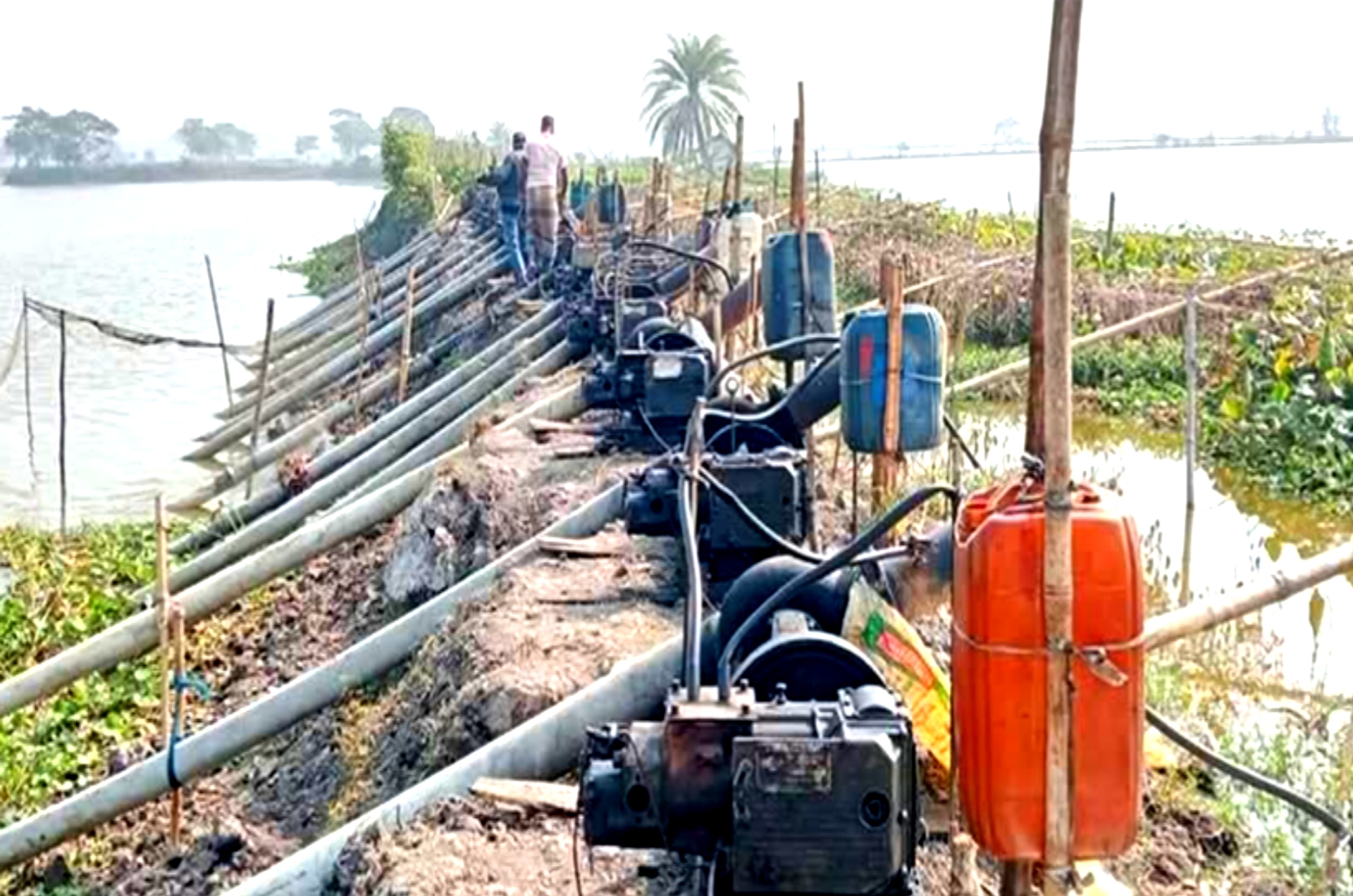 স্থায়ী জলাবদ্ধতার কারণে যশোরের কেশবপুর উপজেলার বিভিন্ন বিলে দীর্ঘ প্রায় দেড় যুগ ধরে সেচপাম্পের মাধ্যমে পানি নিষ্কাশন করে বোরো ধানের