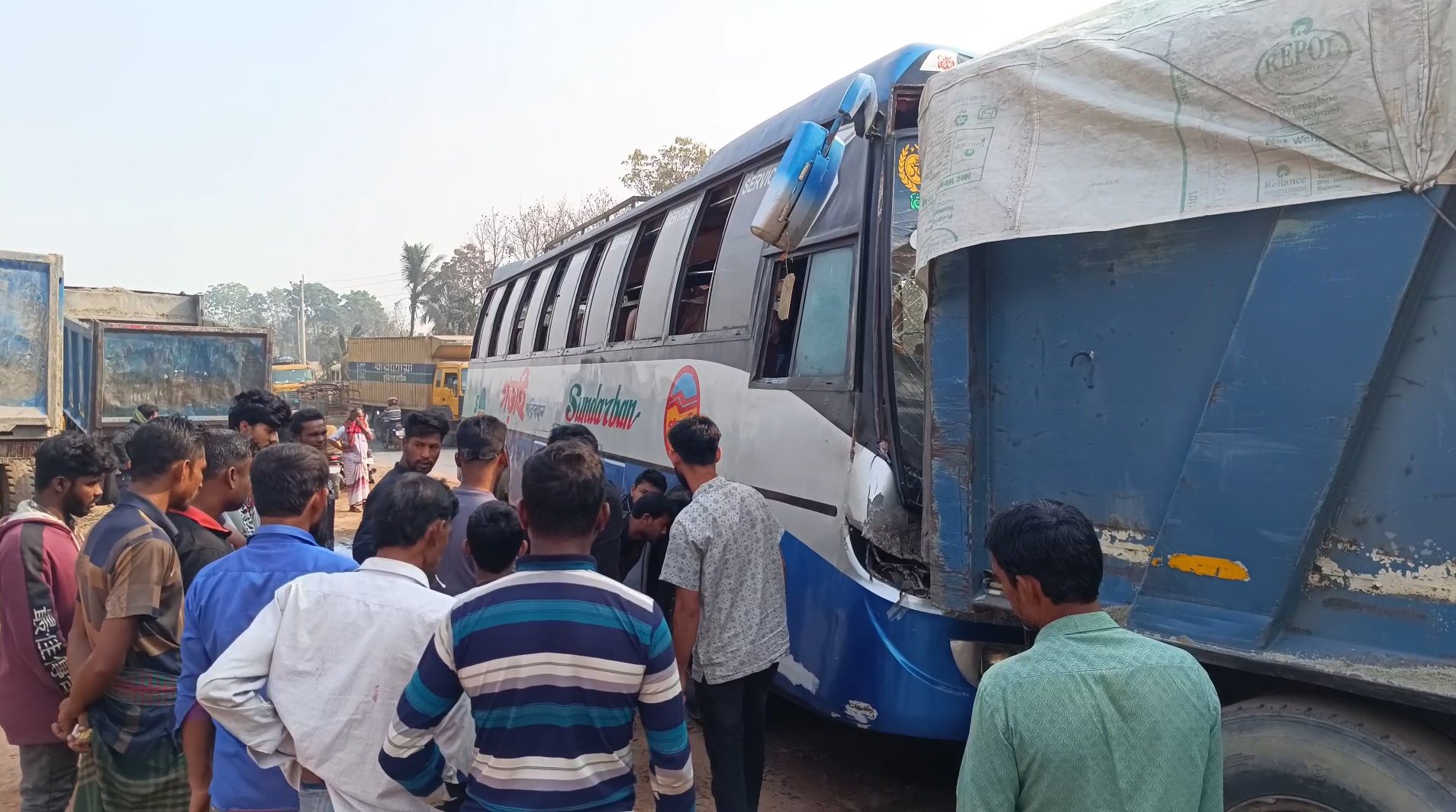 শৈলকুপায় বাস নিয়ন্ত্রন হারিয়ে ট্রাকে ধাক্কা, আহত-১০