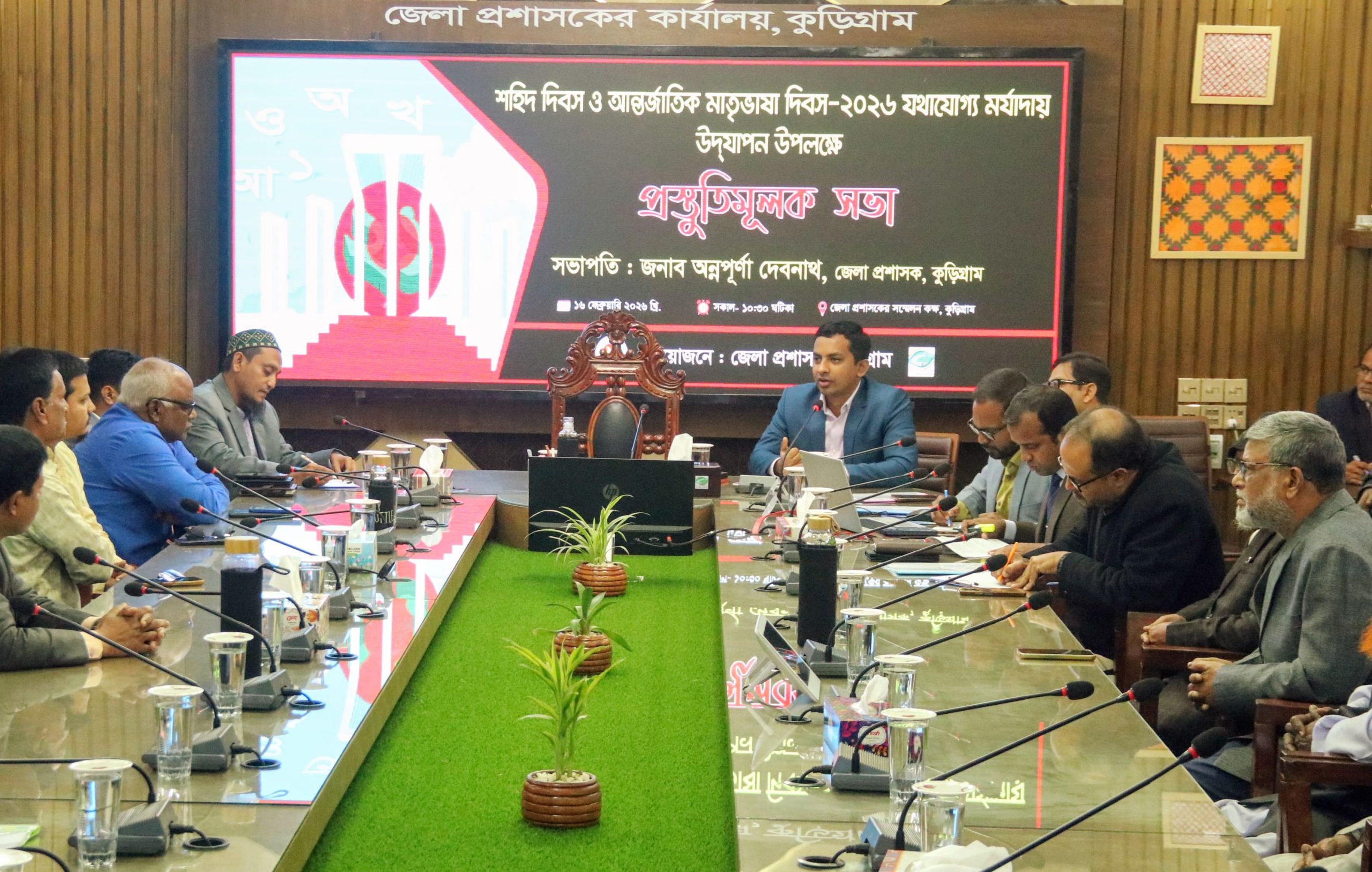 শহিদ দিবস ও আন্তর্জাতিক মাতৃভাষা দিবস ২০২৬ যথাযোগ্য মর্যাদায় উদযাপন উপলক্ষে কুড়িগ্রামে প্রস্তুতিমূলক সভা অনুষ্ঠিত হয়েছে। সোমবার সকালে কুড়িগ্রাম জেলা