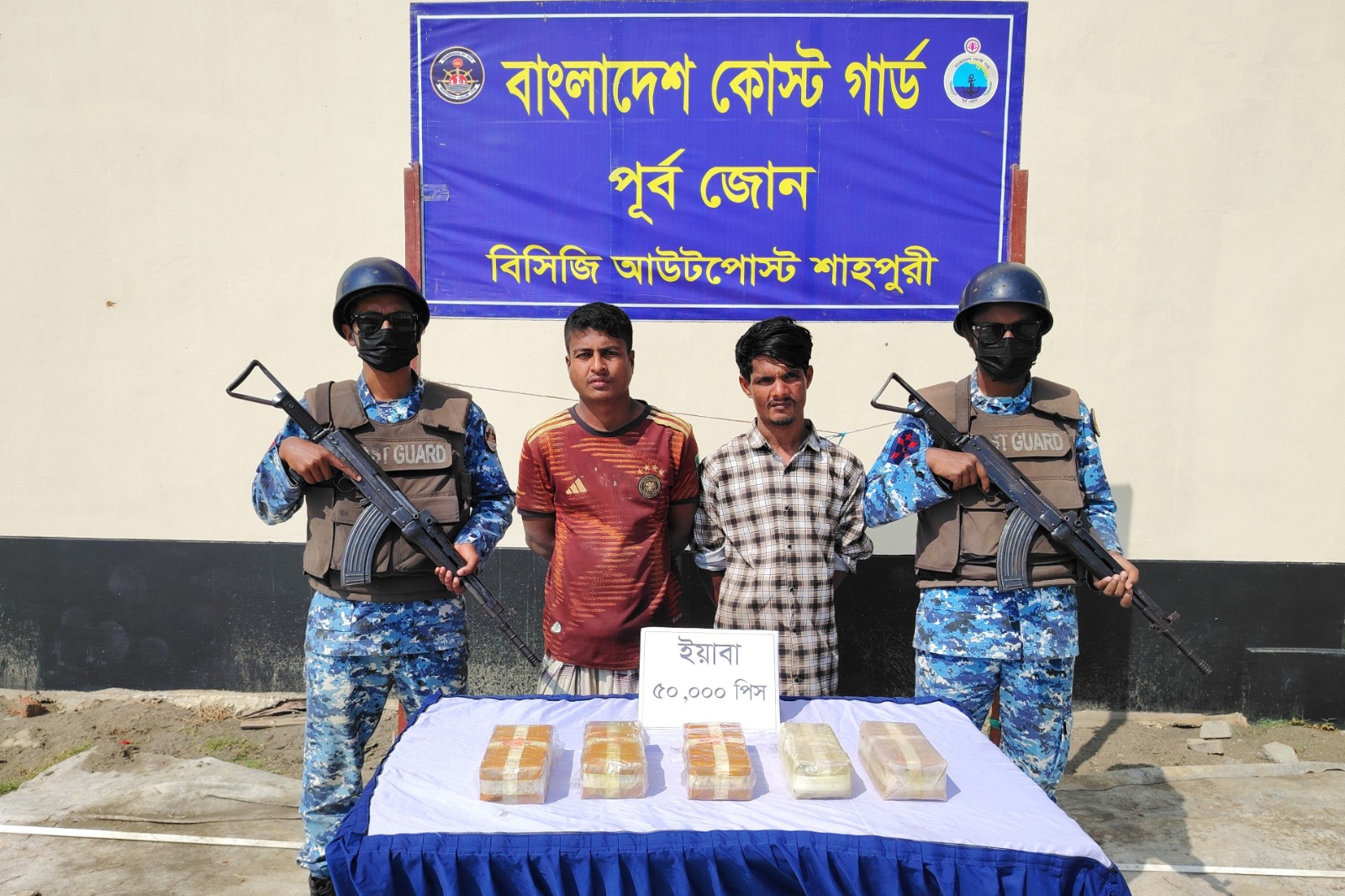 টেকনাফে কোস্টগার্ডের অভিযানে ইয়াবাসহ দুই মাদক পাচারকারী আটক