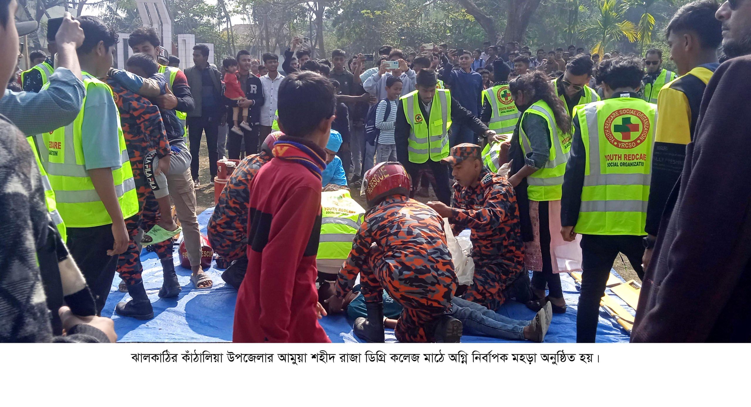 ঝালকাঠির কাঁঠালিয়ায় ভূমিকম্প ও অগ্নি নির্বাপক জনসচেনতামূলক মহড়া অনুষ্ঠিত হয়েছে। গতকাল সোমবার উপজেলার আমুয়া শহীদ রাজা ডিগ্রী কলেজ মাঠে এ