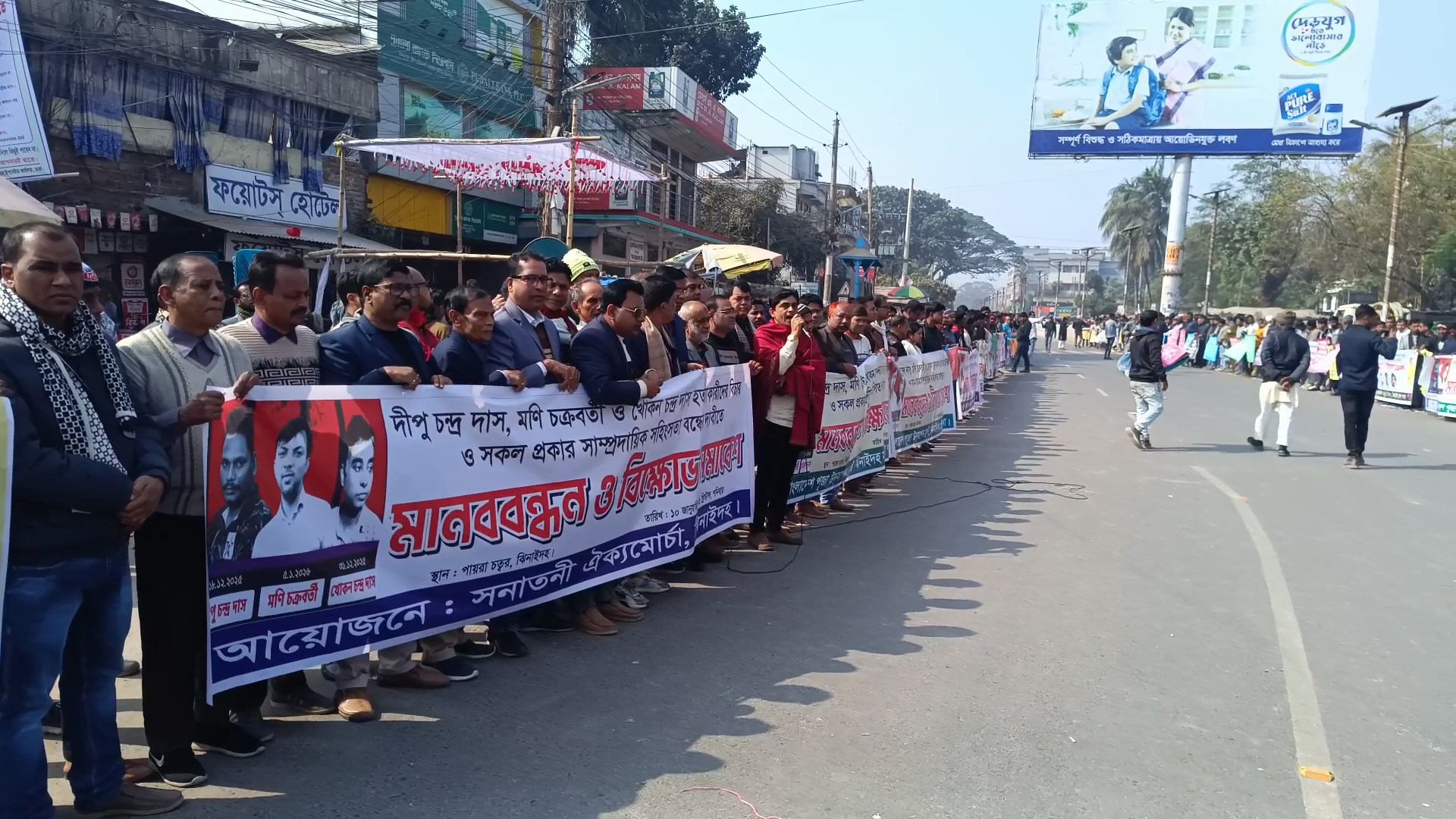 দীপু চন্দ্র দাস, মণি চক্রবর্তী ও খোকন চন্দ্র দাস হত্যাকারীদের বিচার ও সকল প্রকার সাম্প্রদায়িক সহিংসতা বন্ধের দাবীতে ঝিনাইদহে মানববন্ধন