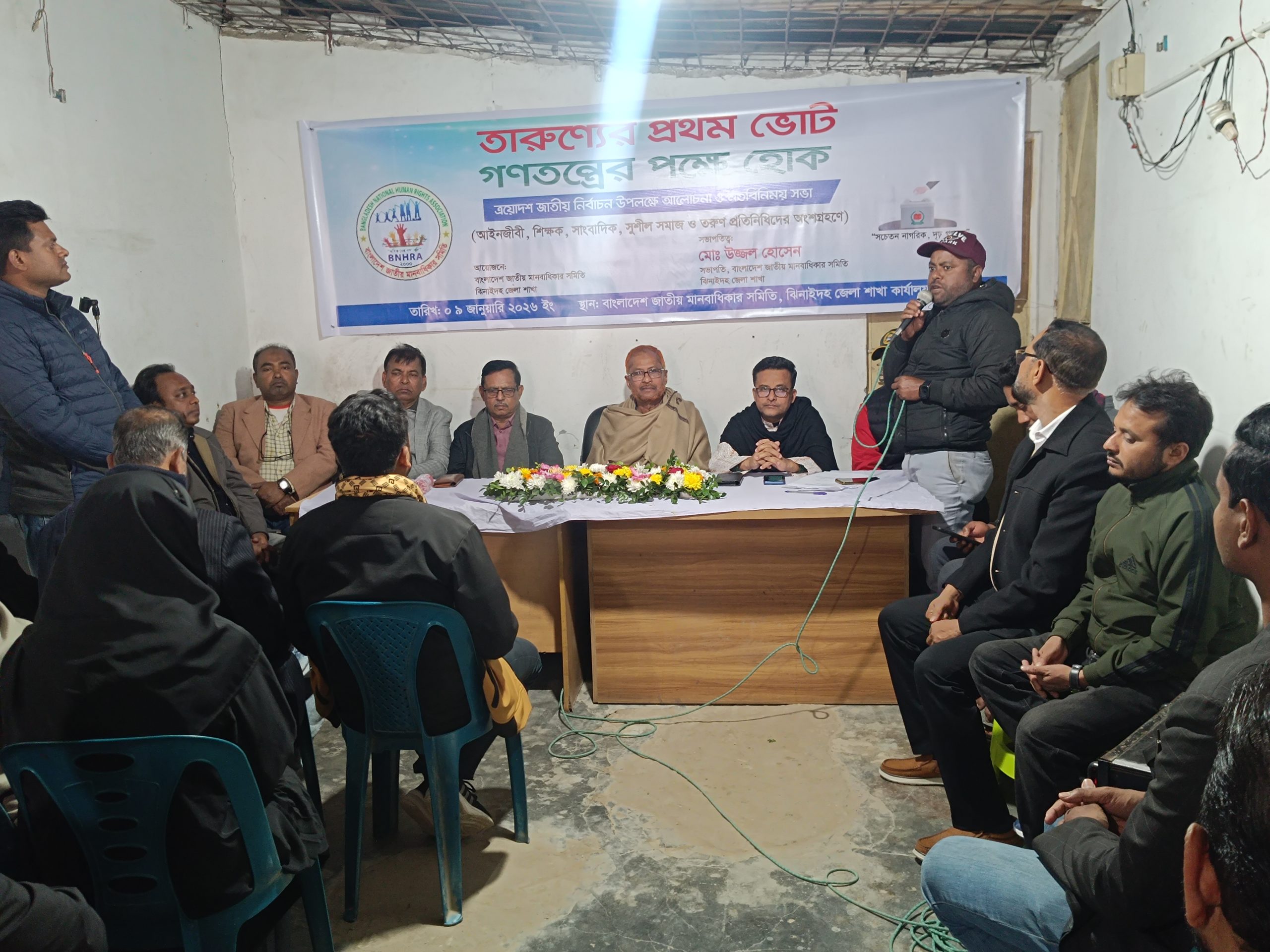 তারুণ্যের প্রথম ভোট, গণতন্ত্রের পক্ষে হোক’ এ শ্লোগানকে ঝিনাইদহে ত্রয়োদশ জাতীয় সংসদ নির্বাচন উপলক্ষে আলোচনা সভা অনুষ্ঠিত হয়েছে। গতকাল শুক্রবার